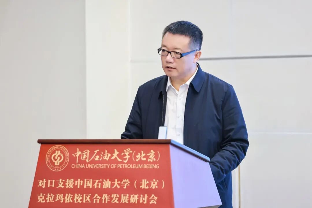 10月27日,对口支援中国石油大学(北京)克拉玛依校区合作发展研讨会在克拉玛依校区国际交流中心召开。教育部思想政治工作司副司长庞谦,新疆维吾尔自治区教育厅高教处副处长熊磊、克拉玛依市副市长李国莲出席会议。
