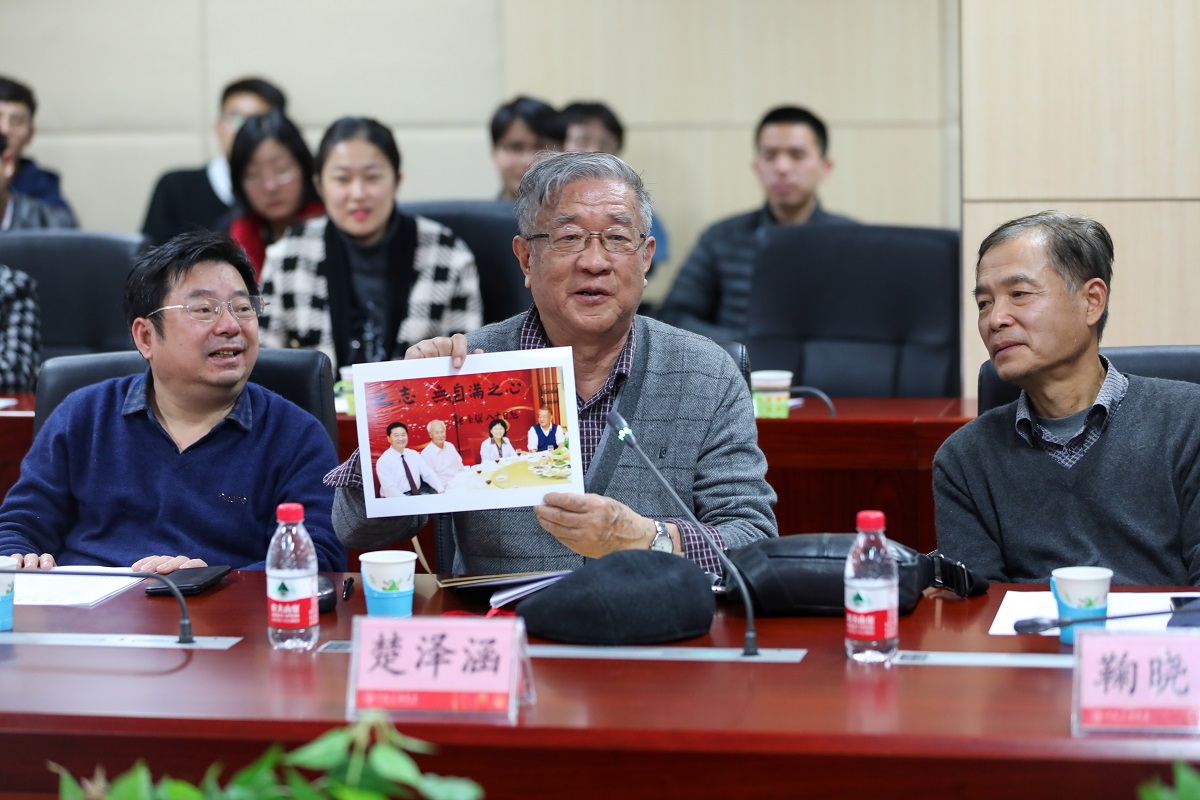 李宁院士深情回忆了自己的求学和工作经历,向求学时的老师楚泽涵教授和山红红赠送了当年的合影照片,表达了对母校培养的感恩之情。他说,在母校的求学经历,奠定了自己科研之路的坚实基础;在石大工作时间虽然不长,却是一生中非常宝贵的一段经历。遇到好老师是一个人成才发展的重要条件,翁文波院士、谭廷栋先生以及母校老师对自己的教诲和严格要求,他始终牢记于心。李宁院士还着重从测井学科建设和学生培养角度,对学校如何办百年大学提出了建议。