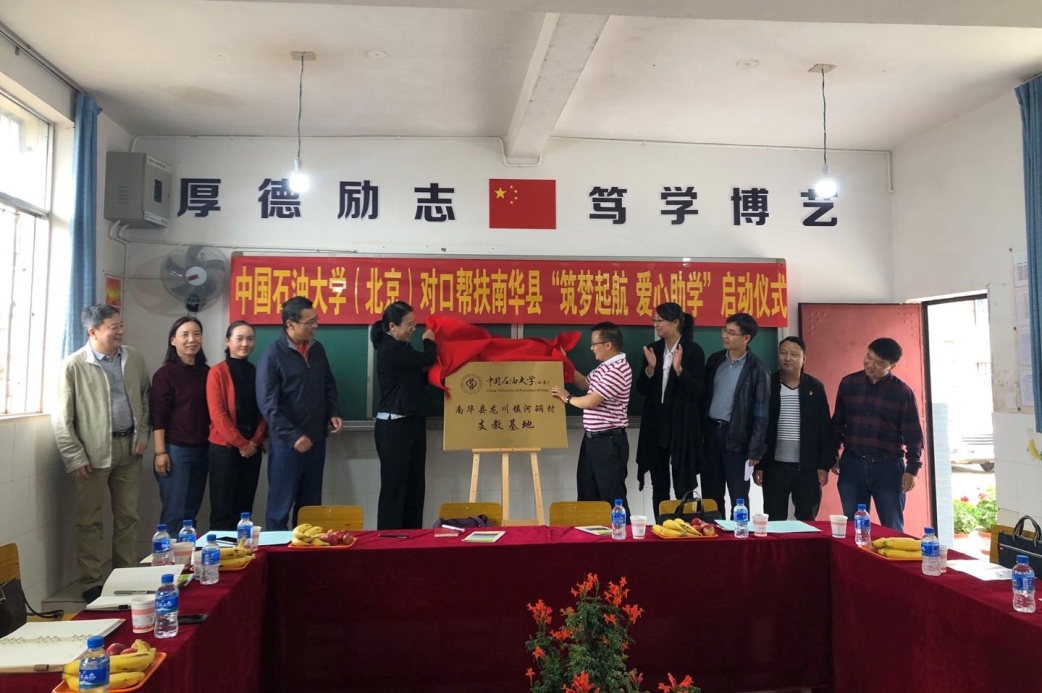28日下午,吴小林一行专程前往龙川镇河硐村考察调研,看望慰问学校挂职干部。在河硐村小学举行了中国石油大学(北京)帮扶南华县“筑梦起航 爱心助学”启动仪式。学校党委组织部与南华县委组织部共同签署爱心助学活动备忘录,吴小林与南华县委副书记鲁泽强共同为学校暑期定点支教基地揭牌。根据备忘录内容,学校基层党支部与南华县贫困家庭学生结对子、设置专项奖学金等一批特色帮扶活动即将启动。吴小林一行走访了参加线上辅导的王阳同学家里,了解支教情况,并带去慰问品。王阳爷爷高兴地说:“辅导效果好得很,全都听得懂,感谢学校!”目前,学校爱心支教活动已全面启动,共有110名学生志愿者和2名教职工志愿者参加,他们利用业余时间辅导学习困难的学生。随后吴小林一行考察了龙川镇岔河村委会易地搬迁、乡村建设等情况。