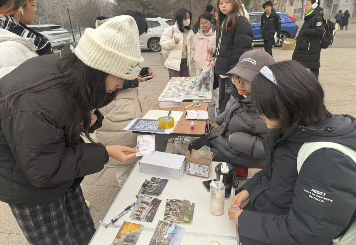活动现场设置四大功能区域。在助农产品展销区,驻村第一书记团带来板栗、蜂蜜、杂粮等优质特色农产品及手工艺品,学生志愿者积极开展推介销售服务,大批师生驻足咨询、选购下单;手工体验区推出艾草香囊DIY、扩香木创作等沉浸式项目,让师生在动手实践中直观感受中医药文化的独特魅力与乡村手工艺的匠心传承;文化宣传区通过展板展示、资料发放、专人讲解等形式,系统普及中医药康养知识,全面推介延庆区文旅资源,进一步增强了师生对乡村文化的认知与认同;故事漂流区搭建起情感交流平台,师生通过留言互动分享助农感悟与乡村印象,凝聚起支持乡村振兴的思想共识。为提升活动参与度与趣味性,本次推广节还创新设置了“游园卡集章打卡”环节,引导师生积极参与中医药知识问答、乡村文化学习、明信片寄语等特色活动,凭集章兑换定制奖品。