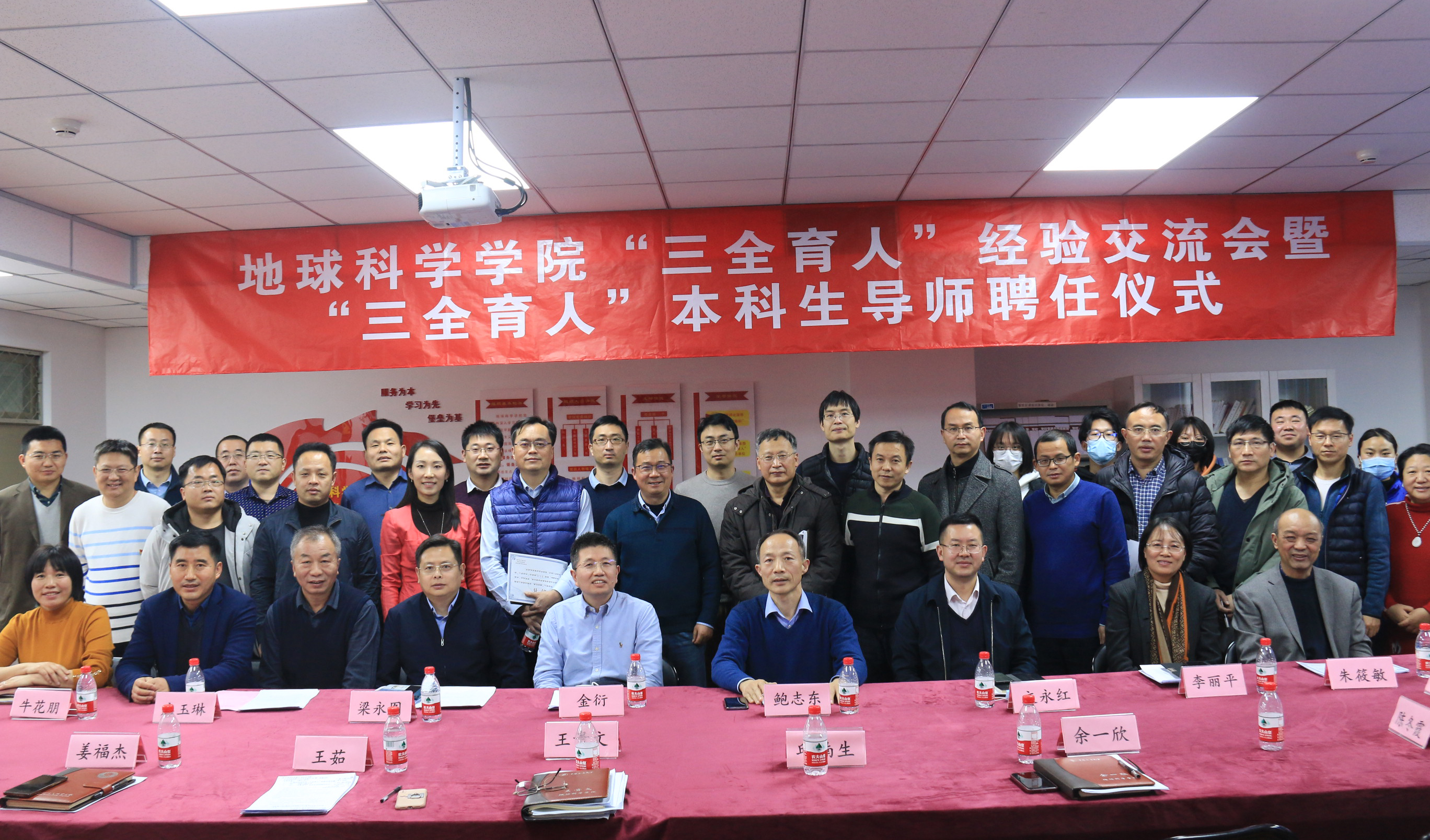 金衍在总结中表示,“三全育人”导师团的组建顺应了学校大教育体系改革的发展趋势,也是“双一流”学科建设的有力支撑。他从爱心、用心、恒心、同心四个方面提出要求,希望学院教师对新时期学生群体的特点进行研究,培养出一批有竞争力、创新能力的复合人才,并结合专业特色,形成特色鲜明的地学文化,为学校高质量发展贡献力量。