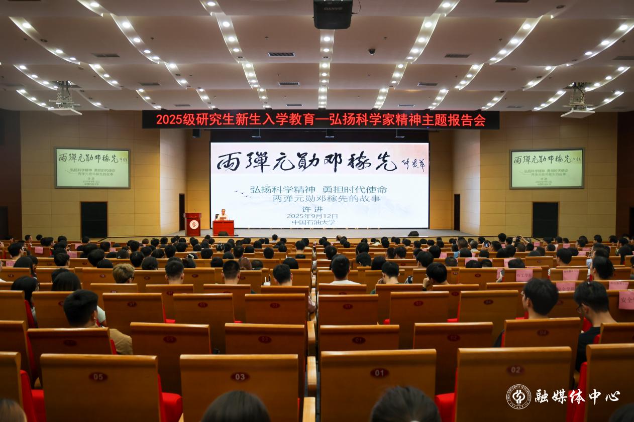 为大力传承弘扬科学家精神,坚定师生能源报国理想信念,9月12日,天游ty8线路1线路2检测中心“传承科学精神 勇担时代使命”弘扬科学家精神主题报告会,全国政协委员、九三学社中央社史研究中心副主任许进以“两弹元勋邓稼先的故事”为主题,为2025级研究生新生作主题宣讲。学校副校长黄磊,研究生工作部负责人、各学院党委副书记、研究生新生辅导员,研究生新生代表等600余人参加活动。
