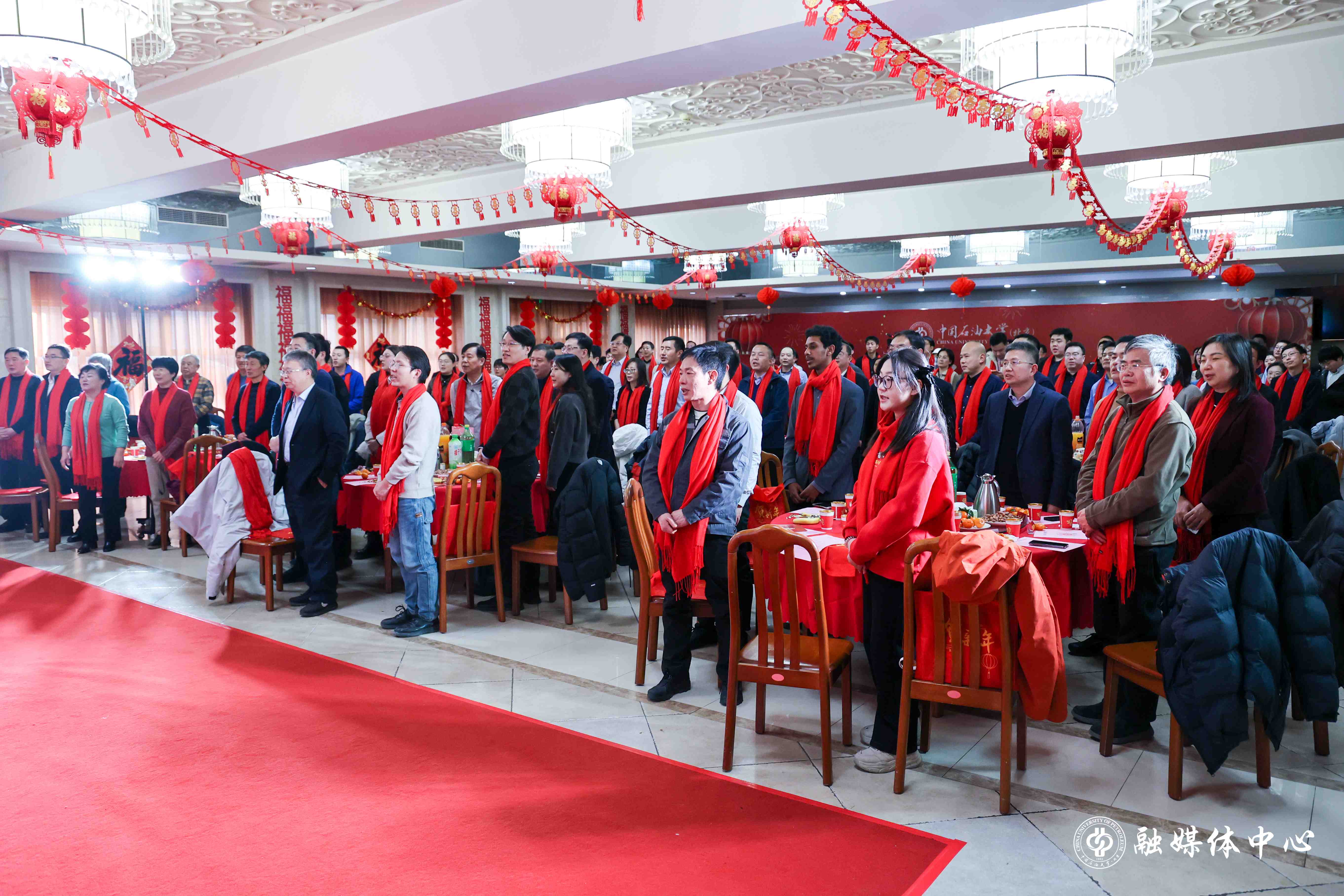 团拜会在全场合唱《我为祖国献石油》的校歌声中落下帷幕,激昂的旋律唱响了中石大人服务国家能源事业的坚定信念。会后,与会人员互致祝福,合影留念。