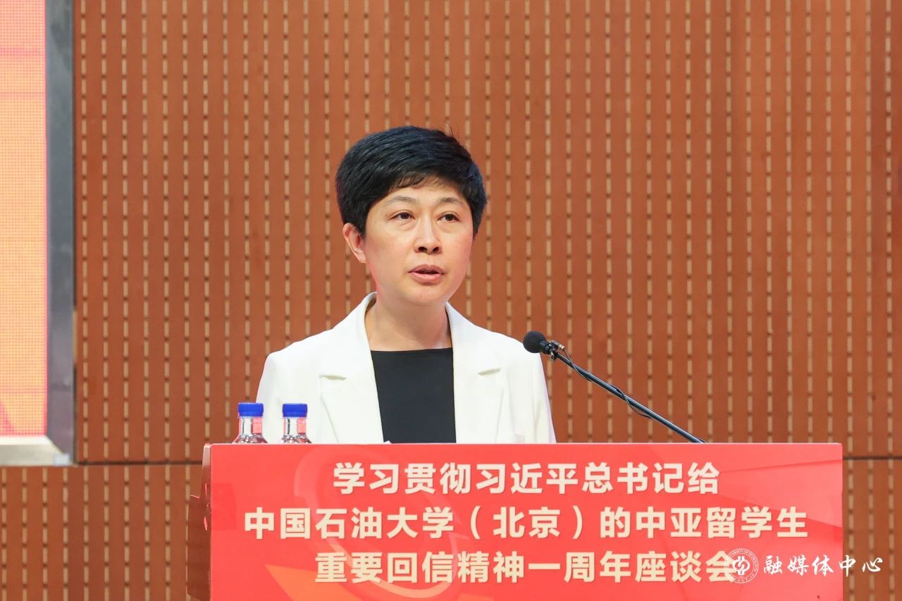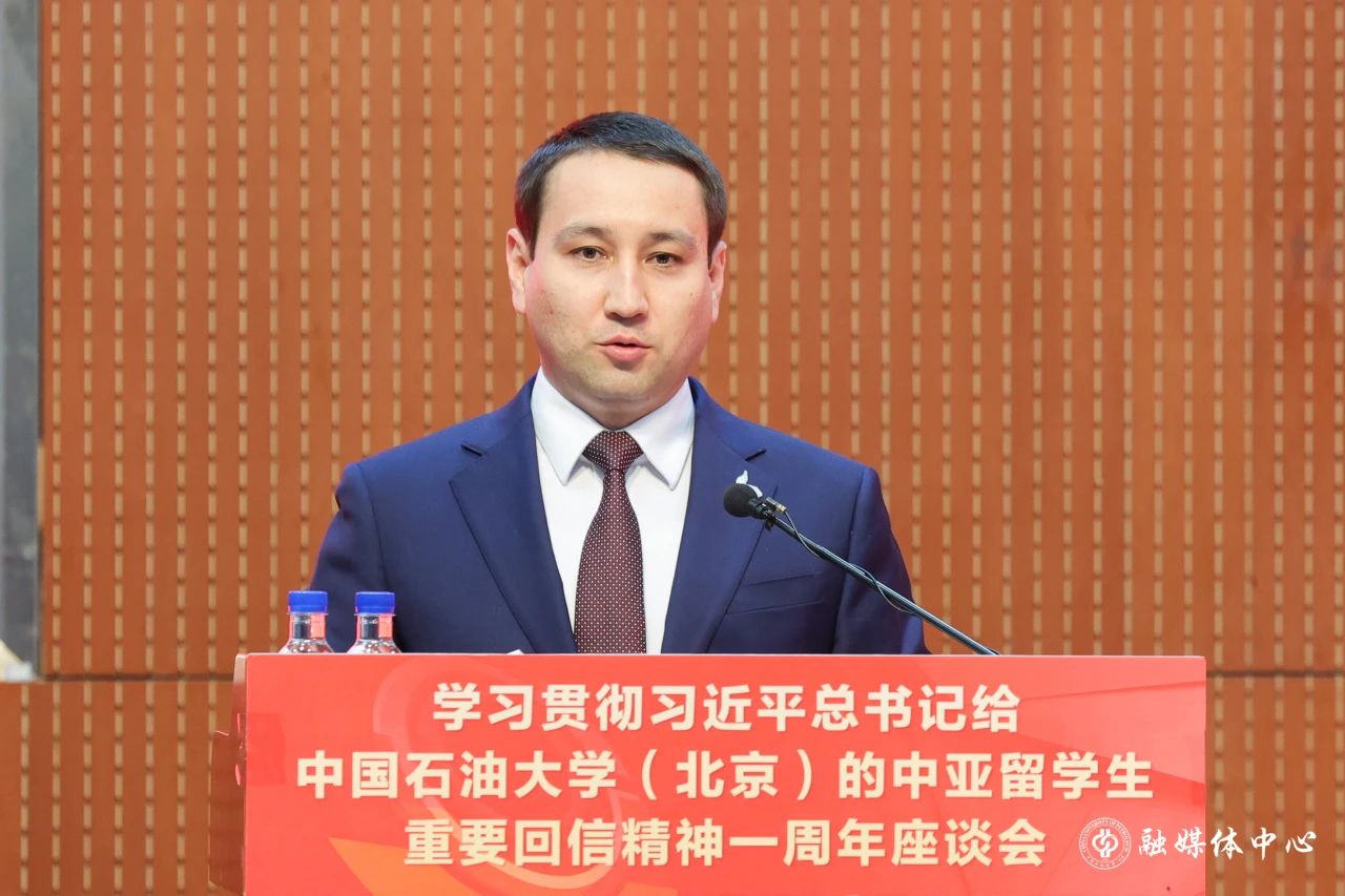 中国石油大学(北京)党委书记王同奇在致辞中代表学校向莅临座谈会的领导、嘉宾表示热烈的欢迎,向长期以来关心支持学校发展的上级单位、驻华使领馆、能源企业及兄弟高校等表达衷心的感谢。王同奇表示,一年来,学校认真领会重要回信的深刻内涵和精神实质,始终坚持以重要回信精神为指引,将学习宣传贯彻回信精神与主题教育相结合,与学习贯彻习近平总书记给学校克拉玛依校区毕业生重要回信精神相贯通,与推动新时代学校高质量发展办学目标相统一,全校上下思想意志和行动更加统一,干事创业的精气神更加振奋,进一步凝聚起全体师生员工勇担时代使命、共谱发展新篇的强大动力。今年是习近平总书记给我校的中亚留学生回信一周年,同时也是学校恢复招收来华留学生三十周年,希望以此次活动为契机,进一步深入学习贯彻重要回信精神,凝聚各方力量切实把重要回信精神转化为加快世界一流大学建设和推动高等教育高质量发展的不竭动力,为服务“一带一路”建设和构建人类命运共同体做出新的更大贡献。