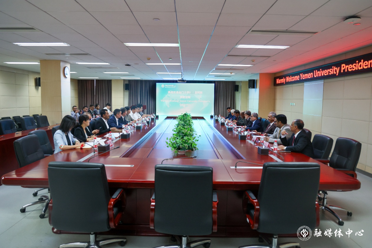金衍对也门校长代表团来访表示欢迎。他简要介绍了学校基本情况,以及近年来在开放办学方面的举措与成就,表示也门是“一带一路”倡议重要国家,与中国友谊深厚,两国高等教育领域合作对增进理解信任、推动共赢发展意义深远,期待学校与也门各高校开启全面交流合作,特别在科研、人才培养等领域深化合作。