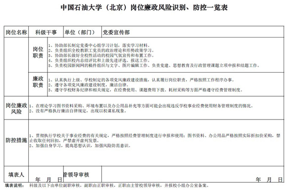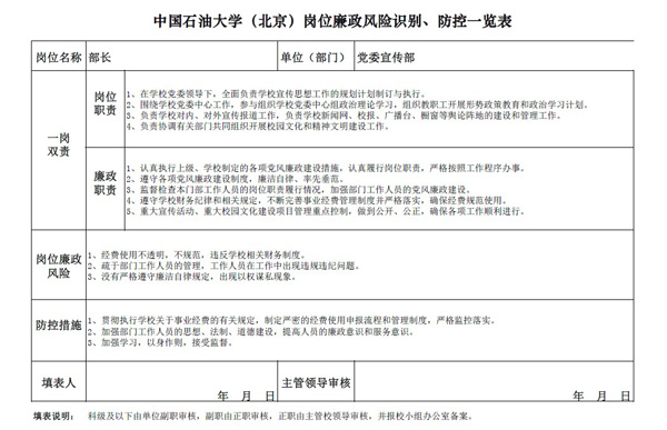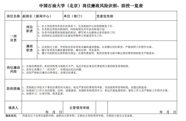 中国石油大学(北京)党委宣传部岗位廉政风险防控表