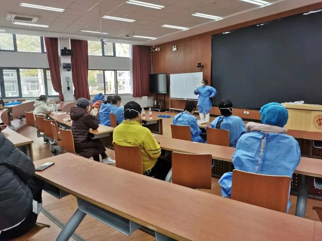 校医院的白衣战士们紧急商讨防疫措施、准备防疫物资、为师生提供核酸检测服务,即使忙得没有时间吃饭也依然坚守岗位。