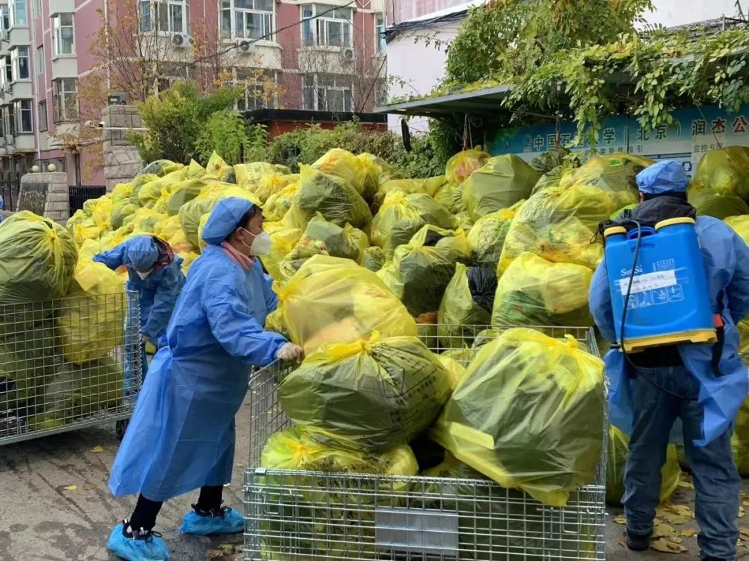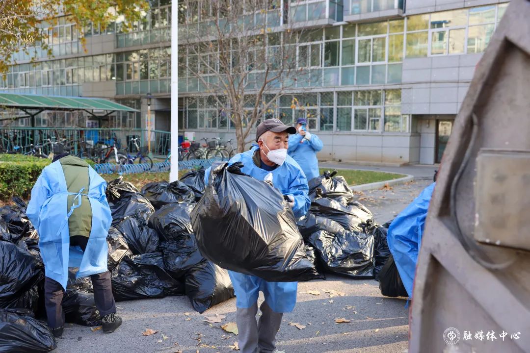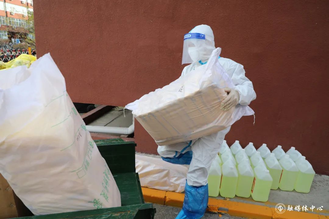 每天往外运送1300多袋的垃圾,吃饭刚吃一半,穿起衣服就往外清理垃圾,来不及穿上厚衣服,套上隔离服就往外冲。