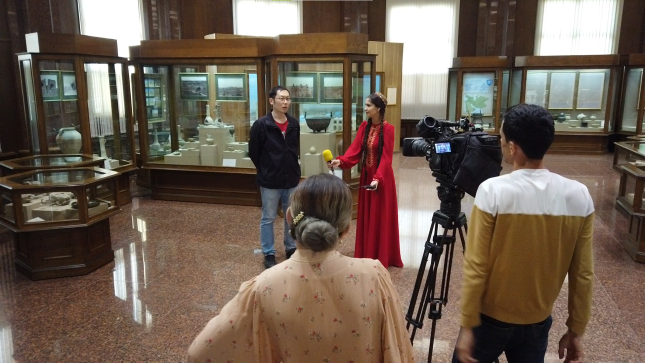 赛后,在参观土库曼斯坦国家自然博物馆的过程中,当地媒体对中石大团队进行了专访。土库曼斯坦记者颖卡兴奋地跑来跟选手说:“我很了解中国!”颖卡在几年前有过在中国留学的经历,她用流畅的中文与大家交流,并和大家交换了联系方式。她说:“再次见到中国朋友,真的很开心。”