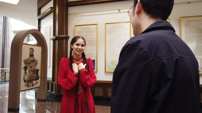 4月14日,代表团到达土库曼斯坦。在当地政府的安排下,他们参观了土库曼斯坦国家自然博物馆和极具当地特色的地毯博物馆,领略当地风土人情。