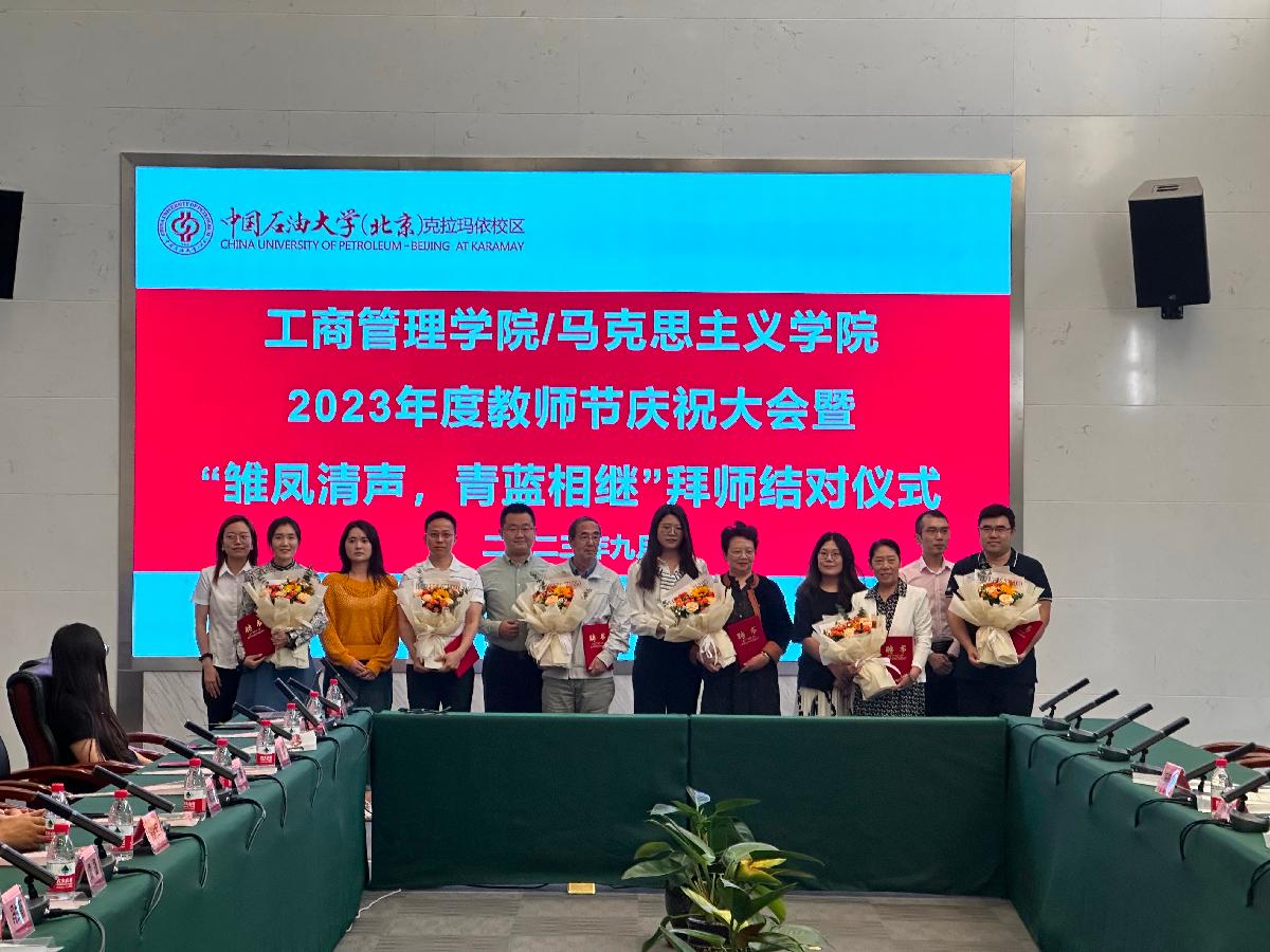 图为银龄教师与克拉玛依校区青年教师结对子