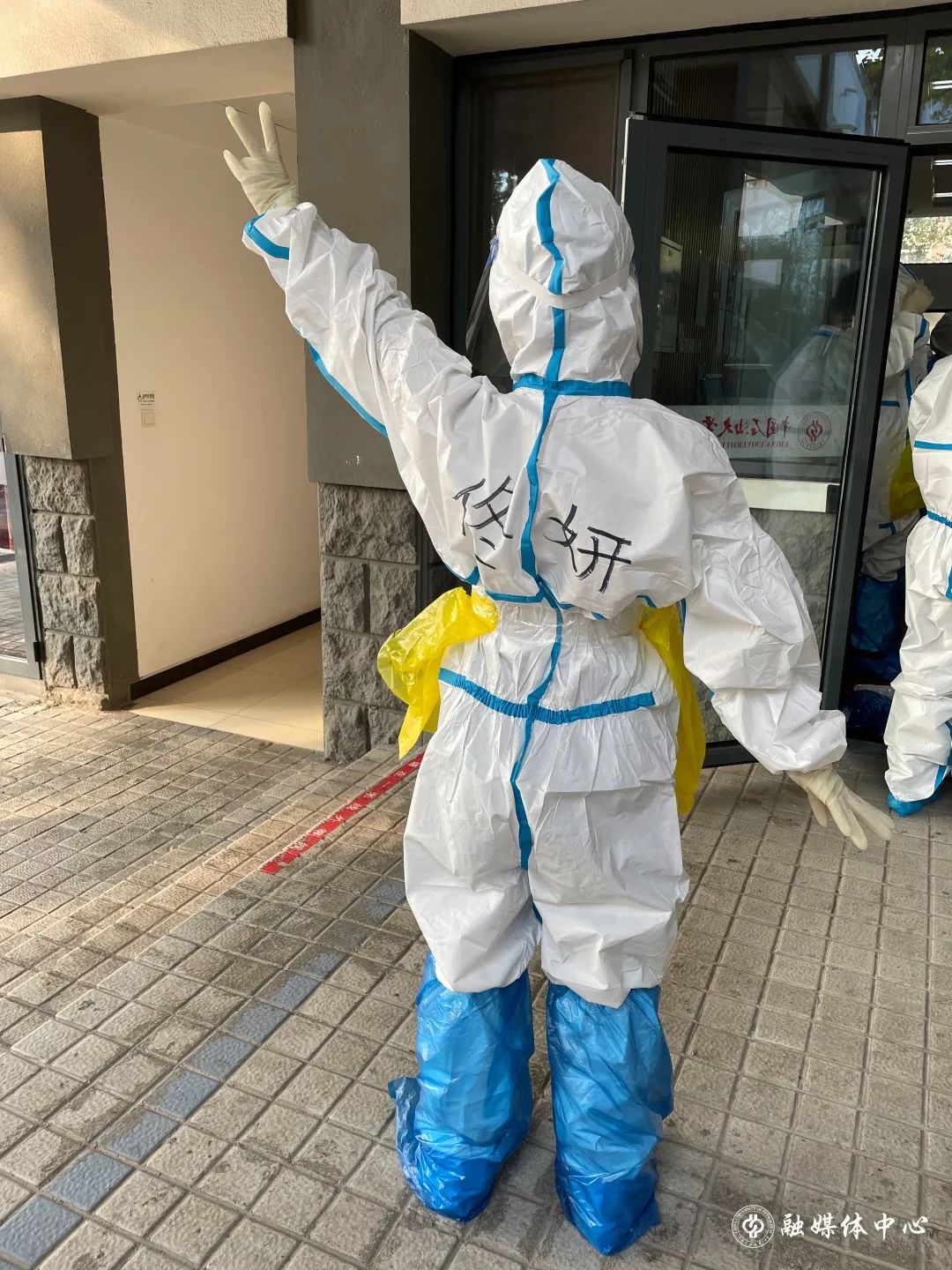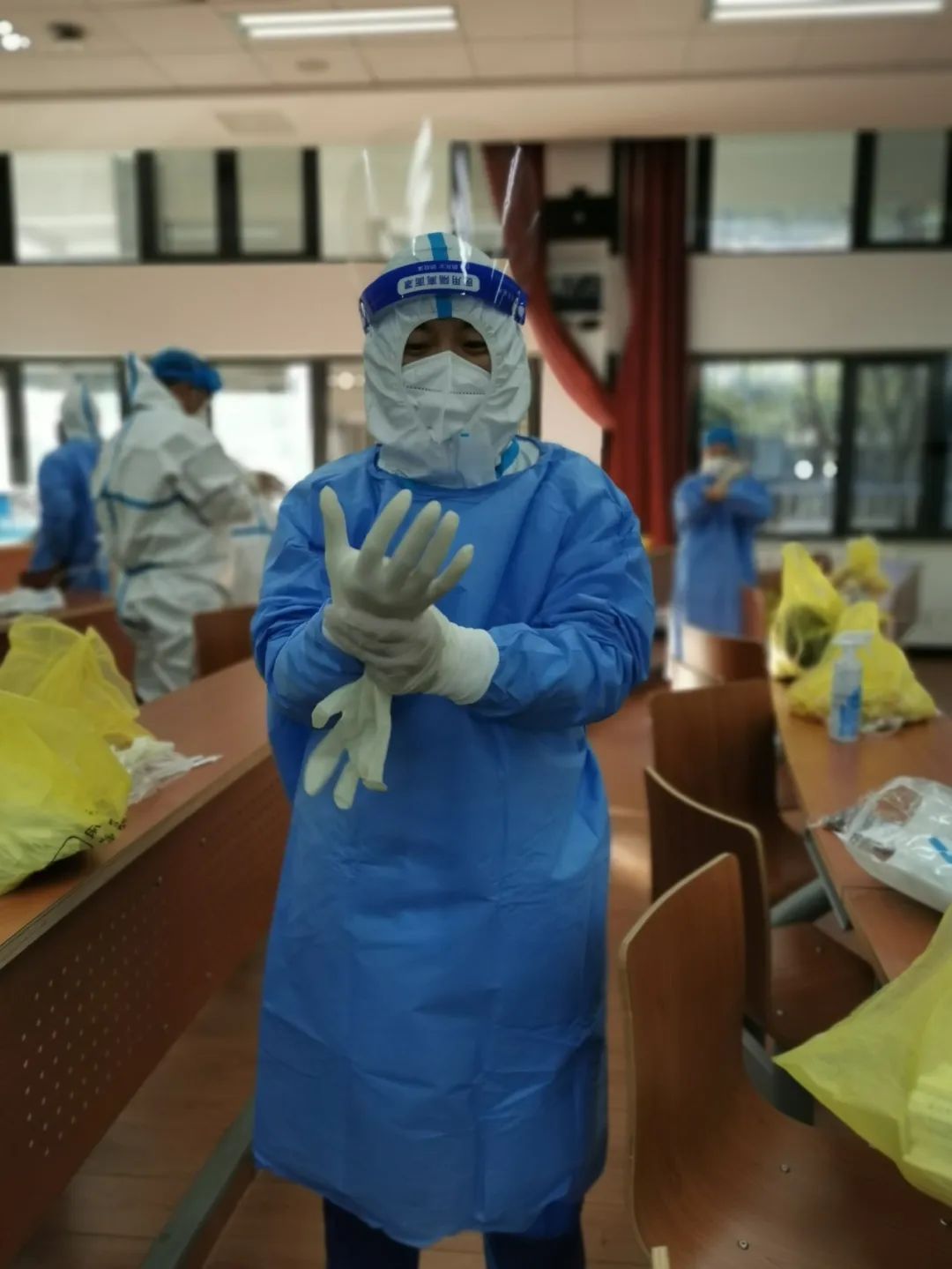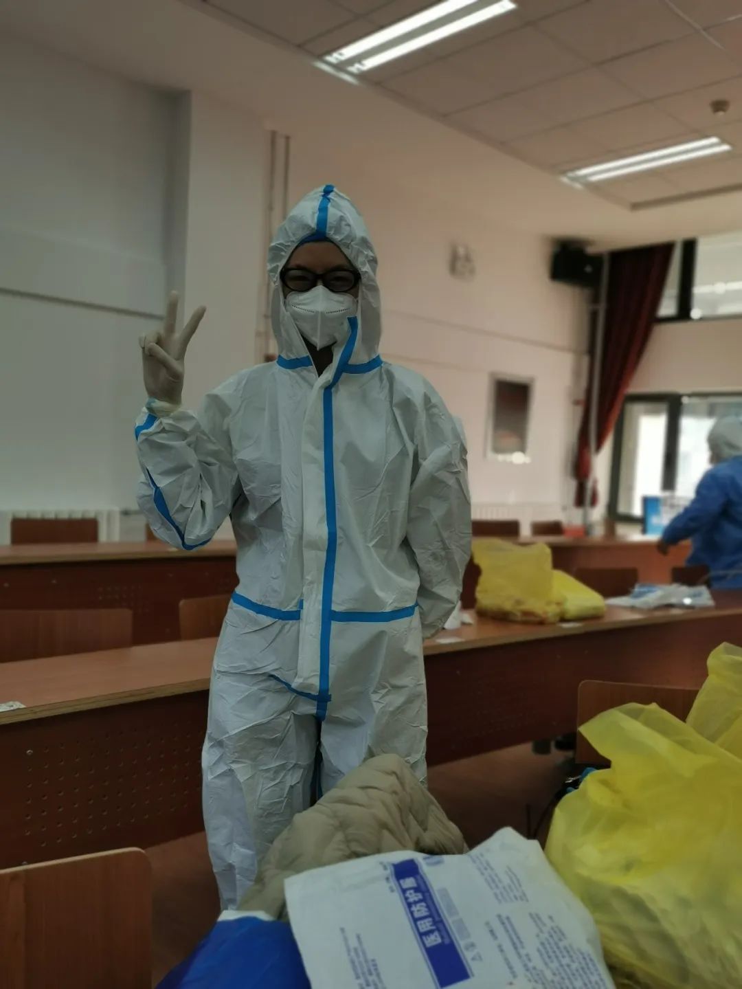 校机关的佟妍老师,家里老人刚刚回到老家,没人照看孩子。得知学校突发疫情需要突击队员时,她立刻给老人买了返回火车票,当天入校加入战“疫”。