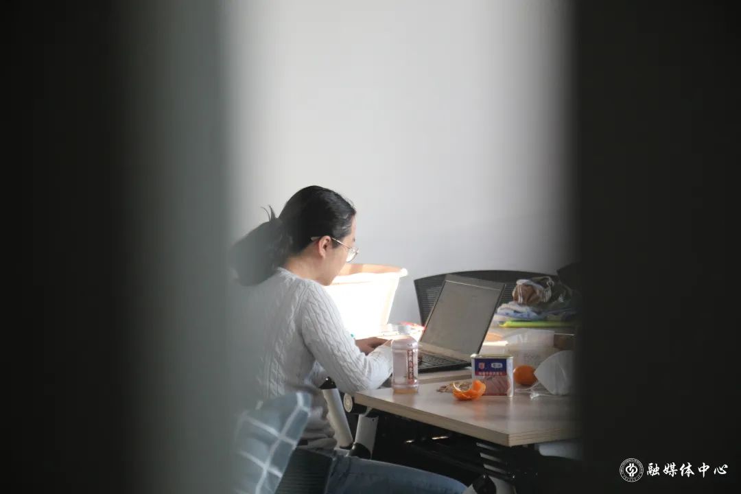 虽然志愿服务很忙碌,丁拼搏依然没有耽误正常的工作。分发早餐完成后,他马上转换身份,在某个学术会议上作了线上报告。