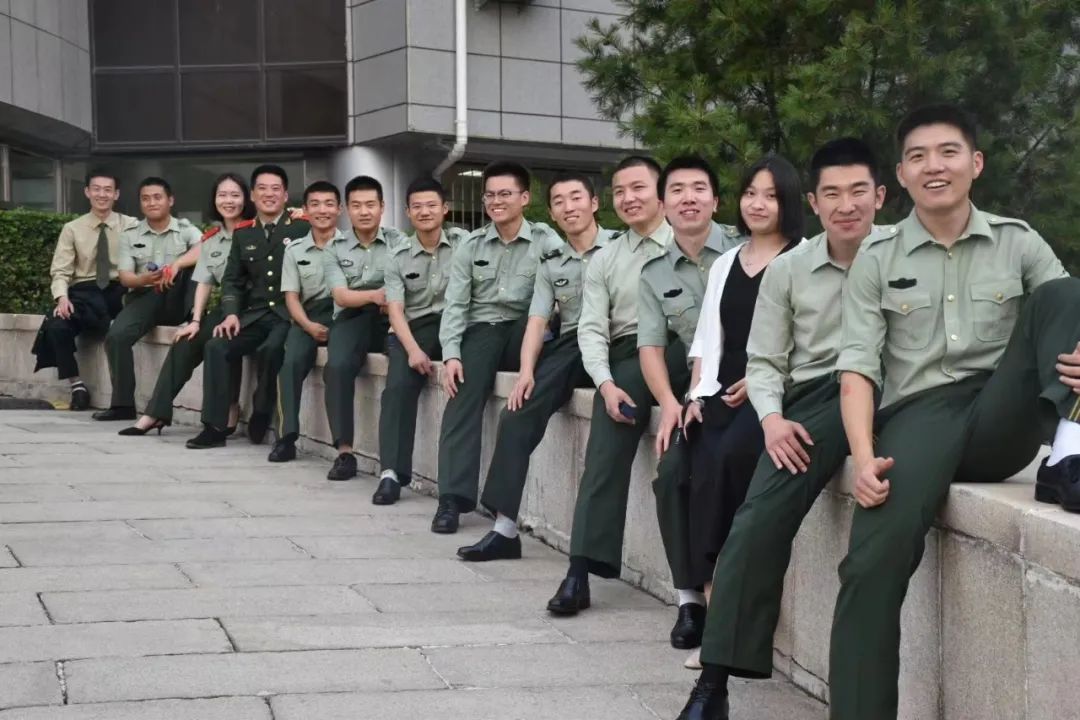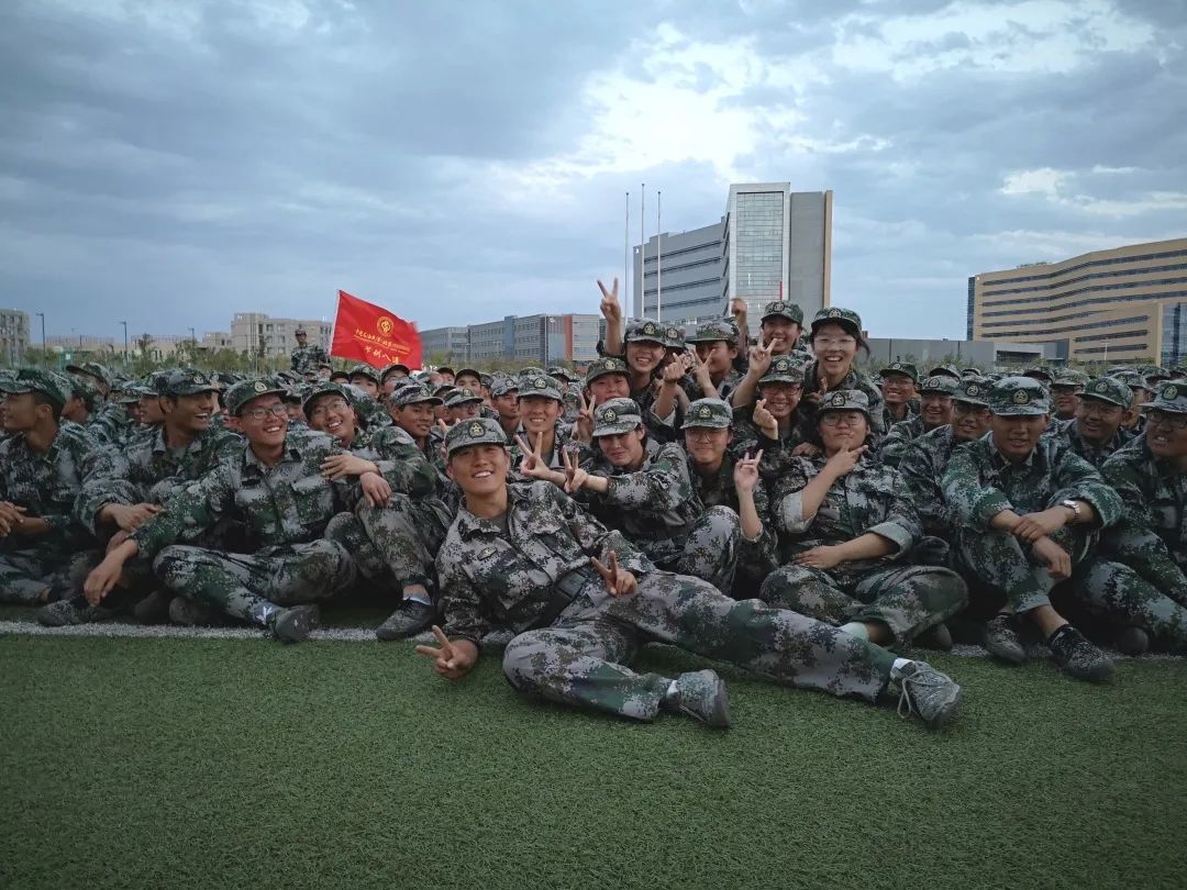 图为张明涵在克拉玛依校区当教官 中间第一排为张明涵