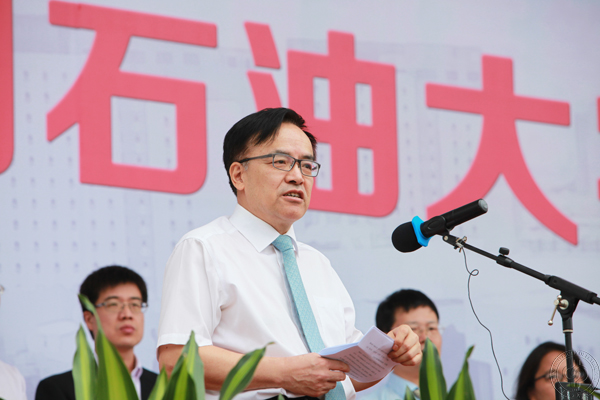 9月1日上午,中国石油大学在红旗操场举行2016年新生开学典礼,欢迎4000多名新同学的到来。校领导张来斌、刚文哲、雷玉江、吴小林、徐春明、庞雄奇,副校级干部鲍志东以及各学院和相关职能部门负责人出席了典礼。典礼由党委副书记雷玉江主持。