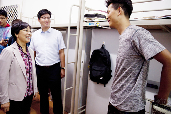 迎新期间,党委书记山红红、校长张来斌分别来到润杰公寓看望报到的新生和家长,检查迎新工作。他们详细查看了各学院、各社团的迎新接待点,向工作人员询问了新生报到情况,与新生和学生家长亲切交谈,勉励新生大学期间努力学习,明确目标,充实的度过每一天。