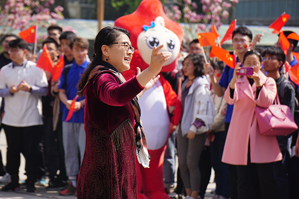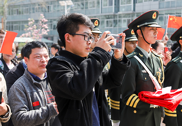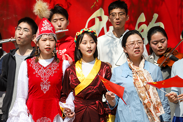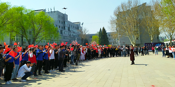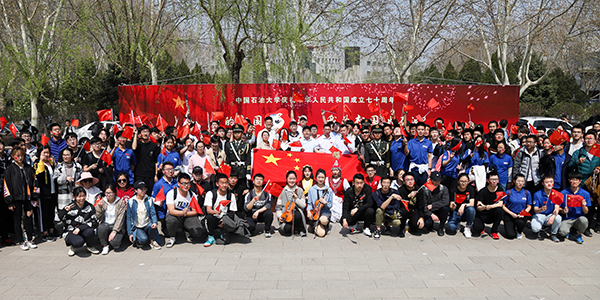 “我和我的祖国,一刻也不能分割。无论我走到哪里,都流出一首赞歌……”石大的四月天,春和景明,草木葳蕤。4日中午,青年园南广场上,杨柳依依,玉兰盛开,“我的祖国我奋斗 我为祖国献石油”中国石油大学庆祝中华人民共和国成立70周年的红色背景板在阳光照耀下熠熠生辉。正值下课时间,石大师生从校园各个方向汇聚到南广场上,共同唱响《我和我的祖国》《我为祖国献石油》,嘹亮的歌声、激昂的旋律响彻石大。石大人用快闪的方式来祝福祖国,表达对祖国的无限眷恋,对石油事业的拳拳之情,也标志着中国石油大学庆祝中华人民共和国成立70周年主题教育活动正式启动。