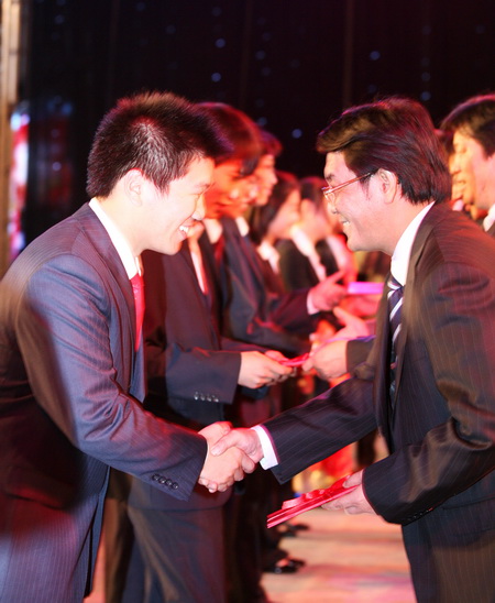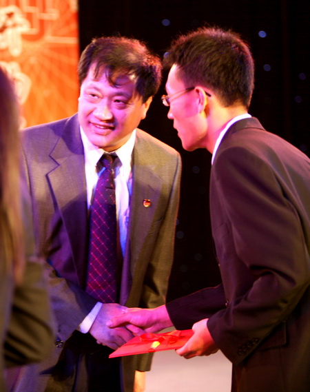 中国石油化工集团公司人事部副主任傅兴顺先生为获奖学生颁奖