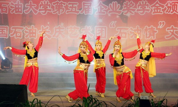 参加中国石油文化论坛的领导和嘉宾,出席我校第五届企业奖学金颁奖典礼的代表们,与我校近2000名师生一起兴致勃勃地观看了演出。