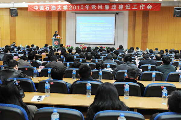 会上,校党委书记蒋庆哲发表讲话。蒋书记指出,2010年党风廉政建设工作会议是全校上下认真学习贯彻十七届四中全会精神、中纪委第十七届五次全会精神,以及教育部纪检监察工作会议精神的一次重要会议,也是继续落实学校“十一五”规划、制定“十二五”规划,不断开创学校各项事业发展新局面的形势下召开的一次重要会议。他强调,全校教职工尤其是党员领导干部要深刻认识加强学校反腐倡廉建设的重要性紧迫性,切实增强使命感责任感,认真领会和贯彻上级有关党风廉政建设的基本要求,切实把它放在学校全局中谋划和部署,并作为一项重要政治任务抓紧抓好。