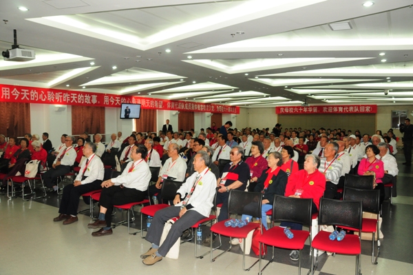 102日下午,学生活动中心报告厅温情洋溢,热闹非凡。原北京石油学院体育代表队近200名老队员从国内外四面八方会聚母校,参加“再回首”校友沙龙活动,同庆母校六十华诞。校长张来斌、体育教学部全体教职工、学校高水平运动员代表参加了活动。