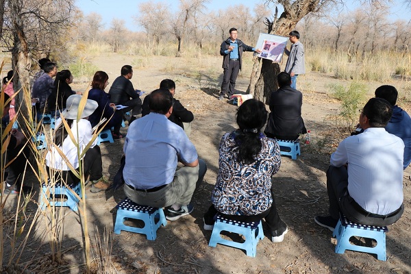 10日,指导组一行列席了石油学院地质系党支部在乌尔禾野外地质教学基地开展的“扎根边疆办教育,我与祖国共奋斗”主题党日活动。在乌尔禾沥青矿、艾力克湖、白杨河峡谷等教学点,石油学院院长谢庆宾带领全体党员进行野外地质教学集体备课,并开展野外思政示范课现场教学活动。在乌尔禾胡杨林,党支部书记带领全体党员回顾了庆祝中华人民共和国成立70周年大会上的感人瞬间,学习了习近平总书记在全国教育大会上的重要讲话。他结合马杏垣院士、时代楷模黄大年的事迹以及塔里木大学的胡杨精神、交通大学的西迁精神等,深入浅出地阐述了“坚持扎根中国大地办教育”以及扎根新疆办大学的重要意义。