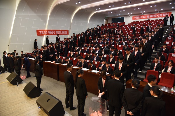 校区学生会第一届主席朱以坤同学作了题为“不忘初心 明确定位,助推校区发展建设;与时俱进 凝心聚力,服务学生成长成才”的工作报告,系统、全面地总结了第一届学生会三年来的工作,并对学生组织的未来发展作出规划。代表们审议并通过了《中国石油大学(北京)克拉玛依校区学生会章程(草案)》,通报了学代会提案征集情况,选举产生了第一届学生委员会委员和第二届学生会主席团。