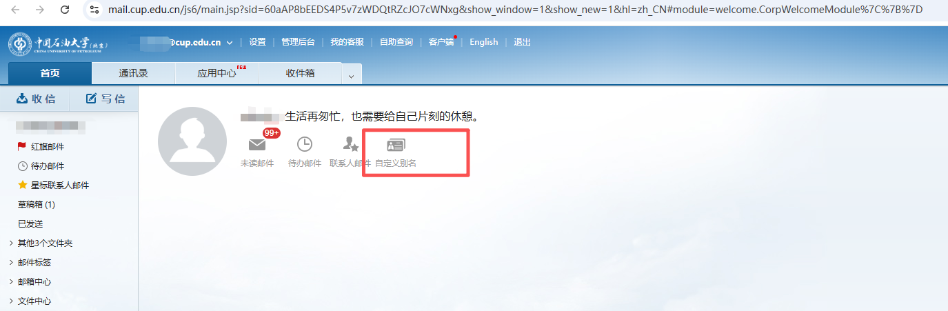登录网页端邮箱,下方有自定义别名(注:别名只可设置一次!),设置好别名后可切换至别名进行发件。