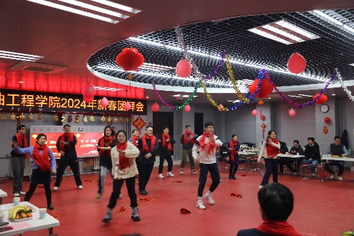 现场进行了多轮游戏环节和抽奖环节,团拜会在合唱《我为祖国献石油》中落下帷幕。本次新春团拜会成功举办体现了学院教职工们踔厉奋发,勇毅前行的精神风貌,新的一年,石油工程学院必将行远自迩,踵事增华,勇闯新路,再启新程!