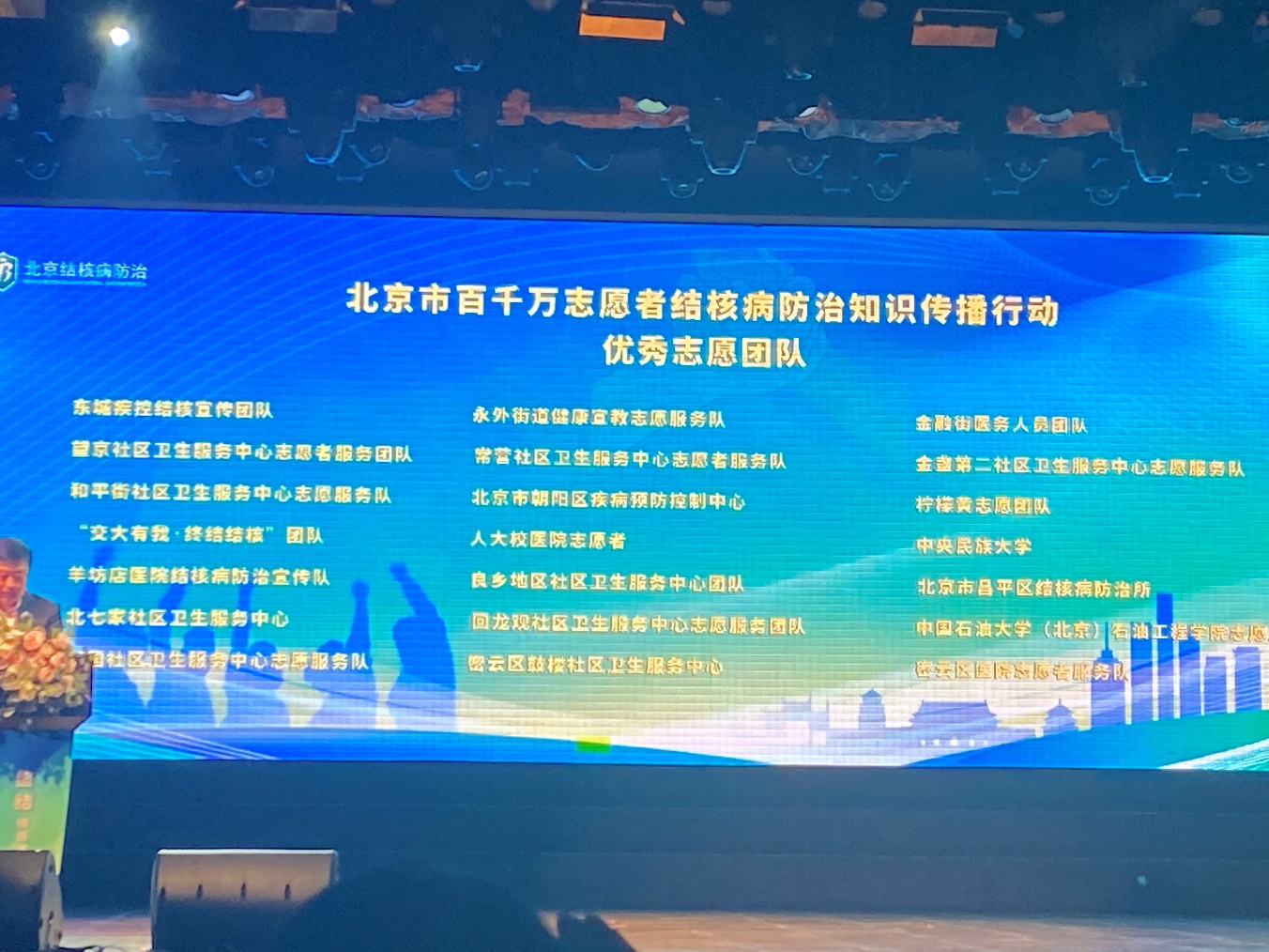 3月22日,北京市第29个世界防治结核病日主题宣传活动在北京财贸职业学院举行。活动现场为2023年首都结核病防治宣传优秀志愿者、团队及组织机构进行了颁奖。经团队自荐、各区推荐、材料审核、专家评审,石油工程学院志愿服务队获评优秀团队。
