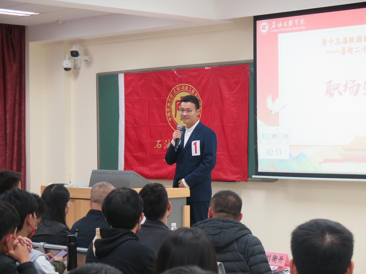 为提升学生就业能力,10月9日,中国石油大学(北京)石油工程学院在东教211举办第十三届校园招聘模拟大赛。本届大赛以“喜迎二十大,筑梦向未来”为主题,邀请到校友企业家北京石大博诚科技有限公司董事长冯海平、北京叁参研学科技有限公司总经理张宁,人力资源专家Wyser(纬择)制造团队负责人王玉镜担任大赛评委,石油工程学院团委负责人、相关辅导员及学院学生代表共计120余人参加活动。大赛得到校友企业北京安捷瑞软件有限公司独家赞助。