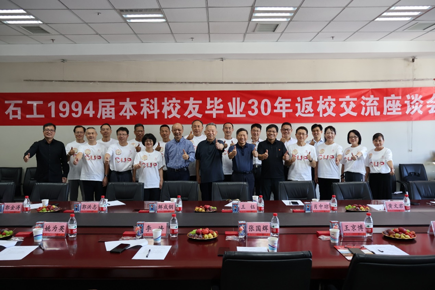 9月21日下午,石油工程学院在学活413召开“七十一载风华正茂 凝心聚力再谱华章”石工1994届本科校友返校交流座谈会。时任石油工程系主任高德利院士、班主任张士诚教授、授课教师代表朱筱敏教授,学院党委书记黄世军、院长宋先知、副院长刘伟、党委副书记刘东东、油气田开发工程系主任曹仁义参加会议。座谈会由黄世军主持。