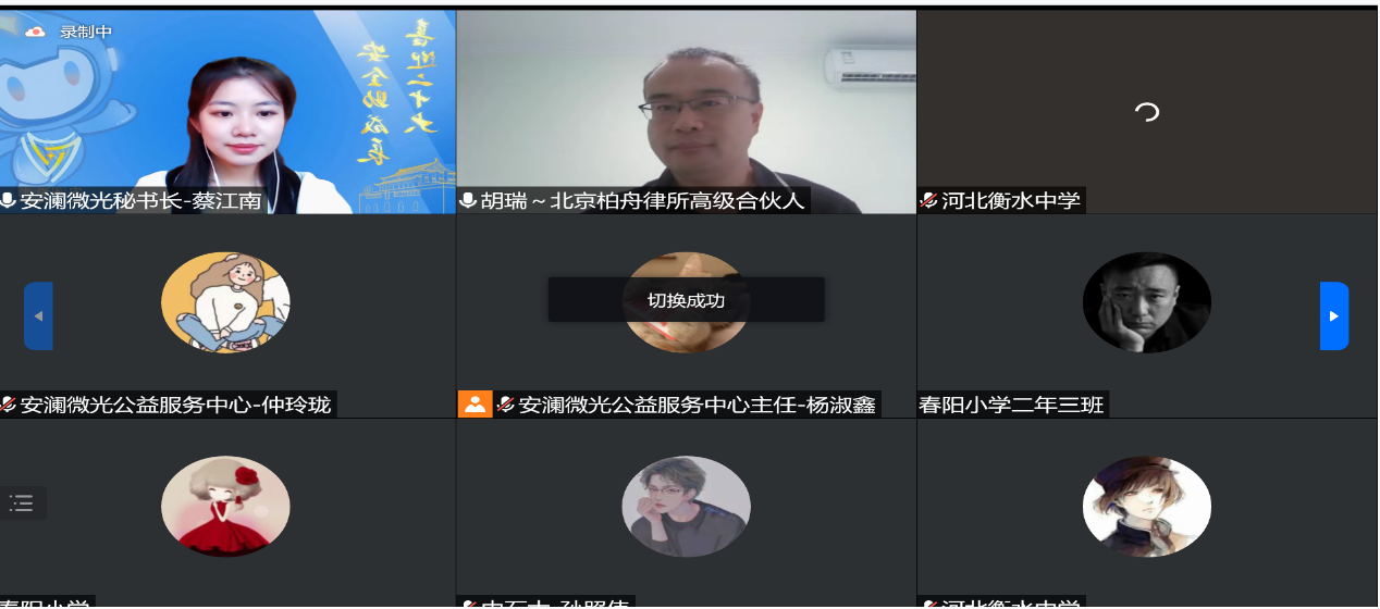 安澜微光法律顾问、2020年度北京“七五”普法先进典型、北京柏舟律师事务所高级合伙人胡瑞律师以“普法育未来,安全助成长”为题,讲解了在遭遇违法犯罪时应该如何自我保护,并着重分享了在当下的疫情防控中,青少年应有的安全意识和法治意识。