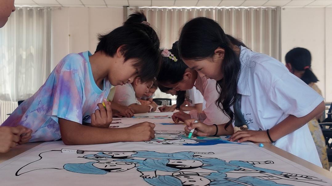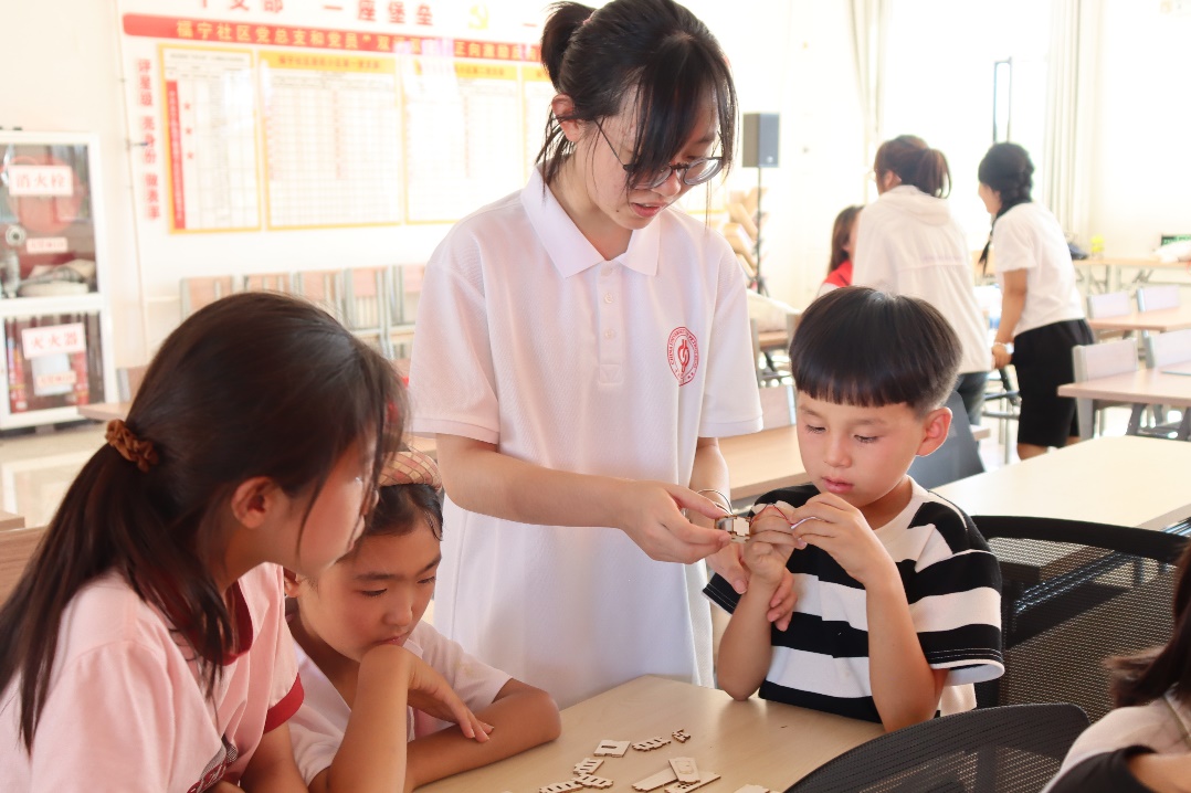 实践团携手中国青年政治学院“闽宁青行”社会实践队、厦门大学研支团,面向闽宁镇福宁社区小学生开展为期一个月的暑期夏令营活动。支教过程中,实践团结合社区“四点半课堂”实际需求,贯彻“德智体美劳”五育并举的教育理念,开展“纪念抗战胜利80周年主题宣讲”“能源科普入课堂”“小小生态梦”“暑期安全你来讲”等特色教育活动,带领孩子们制作太阳能小车、书写家国情怀,填涂5米长“纪念抗战胜利80周年”主题画卷,在寓教于乐中拓宽视野,激发学习兴趣,树立童心向党的理想信念。实践团已连续四年走进福宁社区,累计为社区暑期夏令营学生开展60余个主题、240余学时的暑期支教活动,覆盖人数超200人,收到社区感谢信3封。