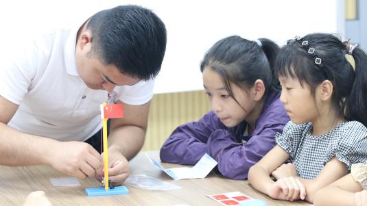 在怡园社区支教活动中,实践团围绕思想启蒙、文化传承、文明生活、科技创新与艺术涵养等多个维度,精心策划了为期五天的支教活动以帮助孩子们在假期里茁壮成长。在庄严肃穆的升旗仪式上,孩子们认真地注视着五星红旗冉冉升起,随后在实践课堂中,他们亲手组装起升旗台模型,表达着对伟大祖国深深的祝福和崇高的敬意。在美术课上,孩子们将无尽的想象倾注于蓝色彩笔之下,努力勾勒青花瓷的精美图案;在书法课堂中,他们以少年风姿,书写翰墨飘香;在文明生活课堂,孩子们学习了碳中和流程与垃圾分类知识,而后他们的积极发言表达了对低碳生活方式的喜爱与向往;在科普课堂上,孩子们戴上神奇的VR眼镜,探索未知世界,用科技搭建梦想的桥梁。实践团循循善诱的教学方式让孩子们在寓教于乐中收获成长,同时也得到了家长和社区工作人员的一致好评。
