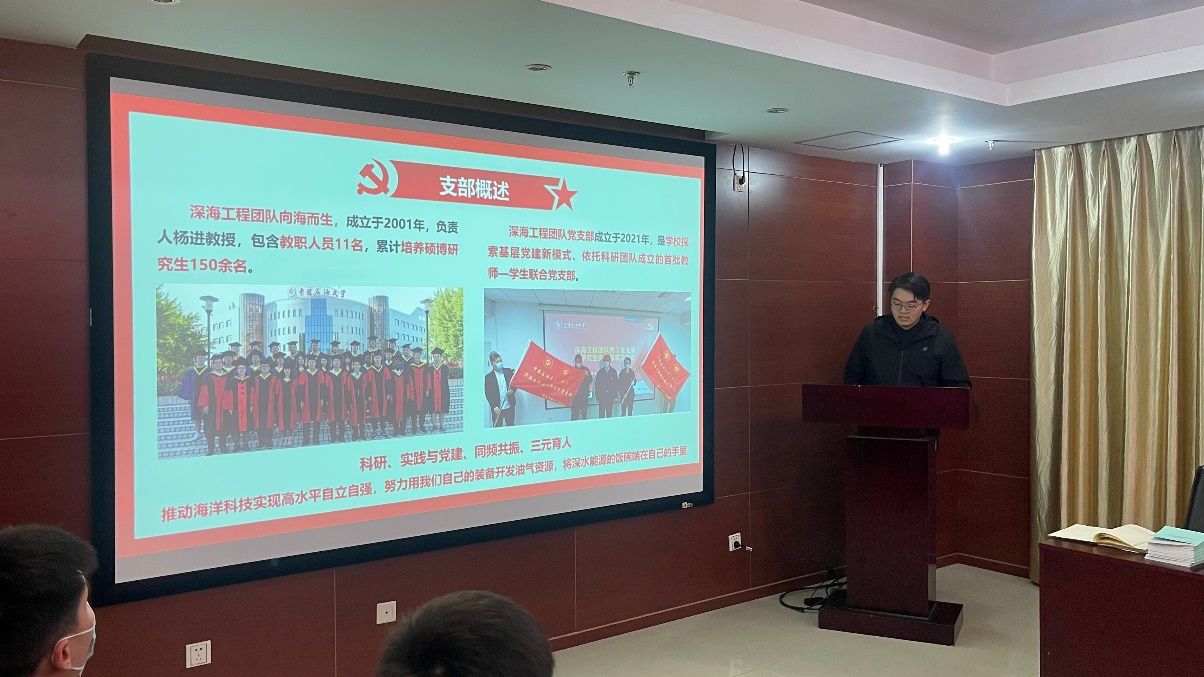 为持续夯实学生党建基础,提升党建工作能力,4月13日,石油工程学院召开第六期“书记有约、党员有品、支部有料”党建沙龙活动,本次党建沙龙邀请到中石大安全学院深海工程团队党支部副书记陈柯锦作为沙龙主讲人。党委副书记刘东东、团委书记肖亚楠、相关辅导员以及全体纵向党支部书记出席。