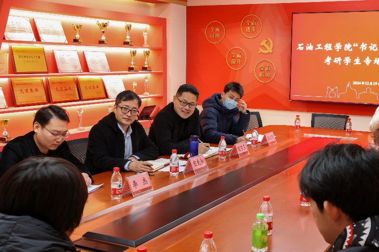 为深入了解考研学生考前的学习和心理状态,切实解决学生实际问题。12月19日,石油工程学院在中油大厦107会议室举办“书记、院长面对面”——考研学生专场座谈会。石油工程学院院长宋先知,党委副书记刘东东,2021级辅导员、学生代表参加活动。活动由刘东东主持。