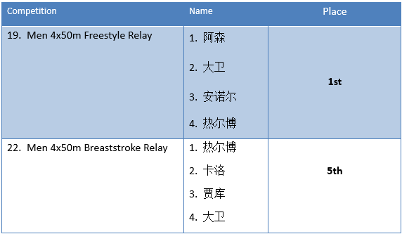 On November 17, 2018, the university swimming competition kicked off at China University of Petroleum (Beijing). First of all, we want to announce the great results and hard work of our college: three champions, three second placers, three third placers, and four fourth-placers. We ranked fourth position among all participating teams. Let us appreciate their tram together.