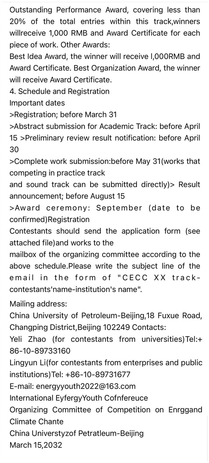 INTERNATIONAL ENERGY YOUTH CONFERENCE 2022 Competitionon Energyand Climate Change Guidelines