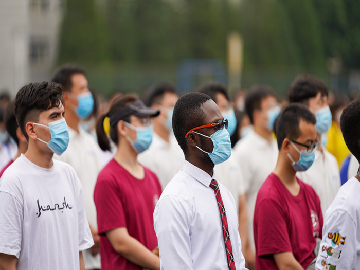 9月5日上午,中国石油大学(北京)2021级新生开学典礼在红旗操场举行。在校国际新生现场参加了开学典礼,身在海外,因疫情原因无法来校报到的国际新生通过线上直播平台观看了开学典礼。自此,他们在中国石油大学(北京)的学习生活正式开始。