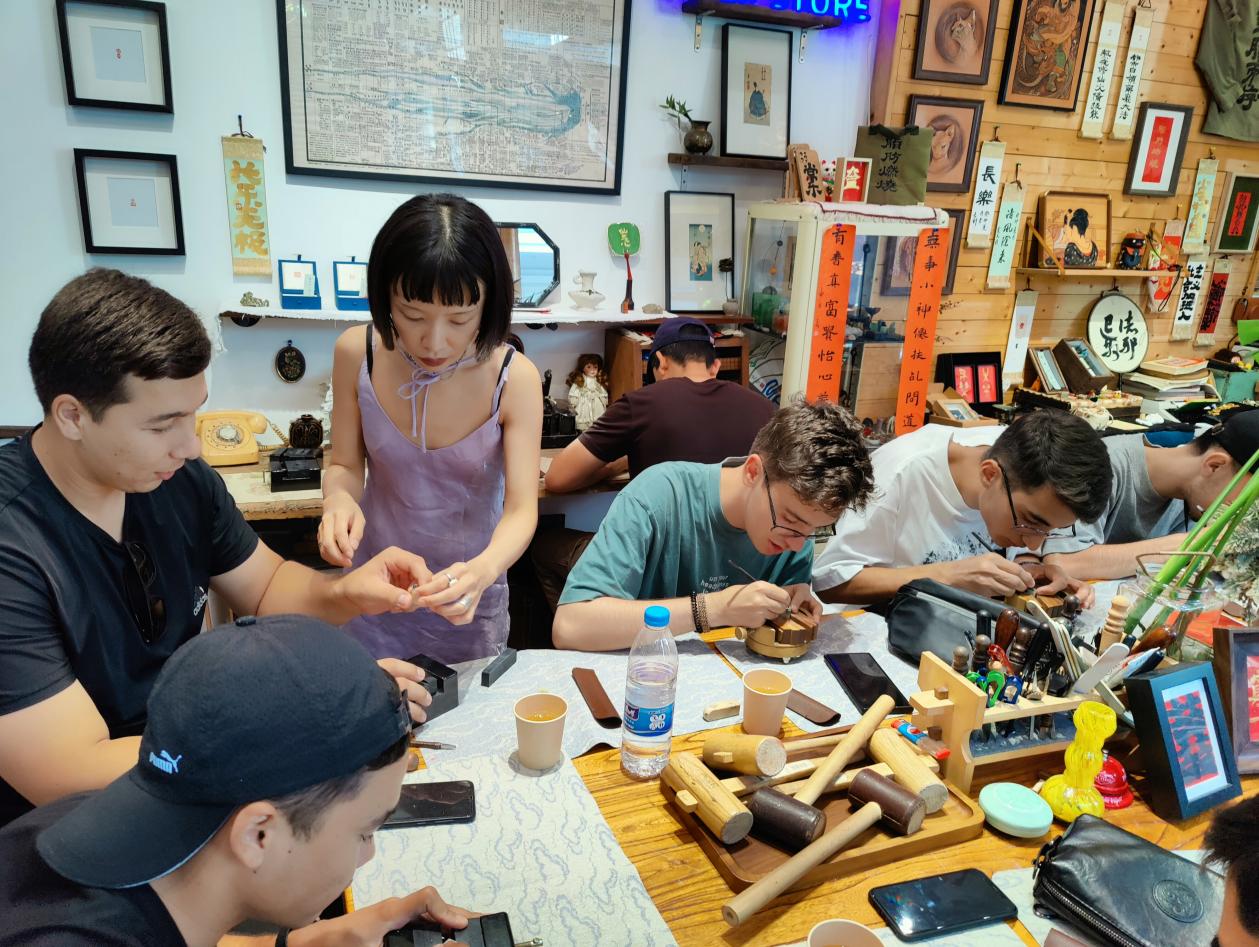 除课堂与科研活动外,项目还注重文化交流与实践体验。在校内活动中,学员们学习了剪纸、篆刻、拓印、漆扇制作等中国传统技艺,并身着汉服体验古代服饰文化,切身感受中华文化的艺术之美。