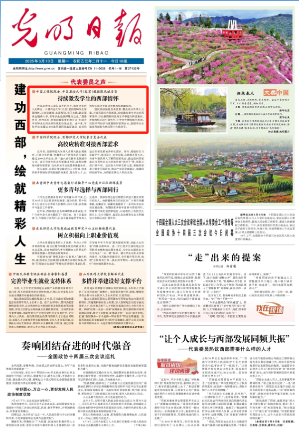 建议高校依托自身优势,整合校内外育人力量,打造沉浸式大思政课,持续激发青年学生的西部情怀;以扎根西部的优秀学子事迹为鲜活教材,发挥榜样示范引领作用;引导学生增强能力本领,找到学科知识与家国情怀的契合点,鼓励学生在建设西部的火热征程中大展身手。