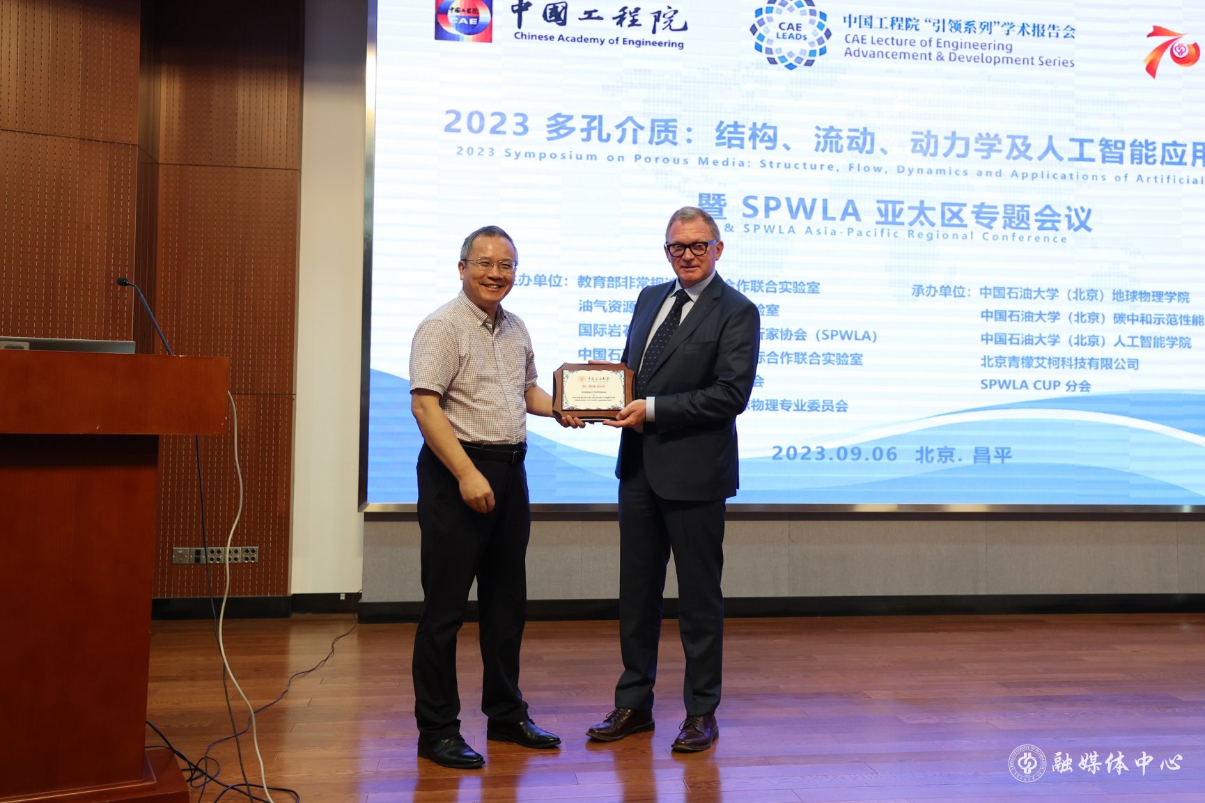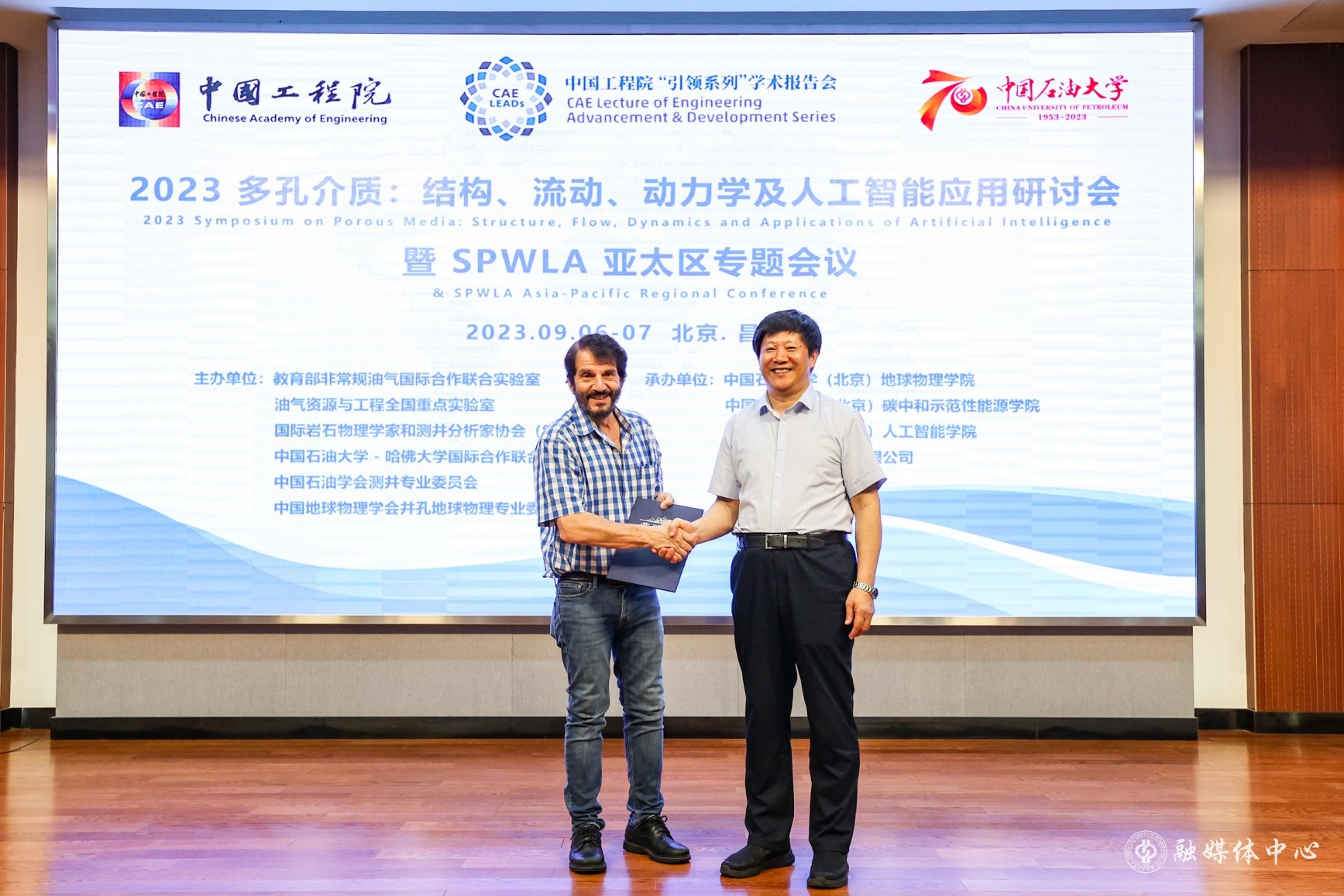 9月6日至7日,“多孔介质:结构、流动、动力学及人工智能”应用研讨会暨SPLWA亚太区专题会议在中国石油大学(北京)翠宫报告厅召开,共130余人参会。本次会议是学校70周年校庆学术活动的一部分,也是中国工程院“引领系列”学术报告会的一部分,由教育部非常规油气国际合作联合实验室、油气资源与工程全国重点实验室、国际岩石物理学家和测井分析家协会(SPWLA)、中国石油大学—哈佛大学国际合作联合实验室、中国石油学会测井专业委员会、中国地球物理学会井孔地球物理专业委员会主办,学校地球物理学院、碳中和示范性能源学院、人工智能学院、北京青檬艾柯科技有限公司、SPWLA CUP分会共同承办。