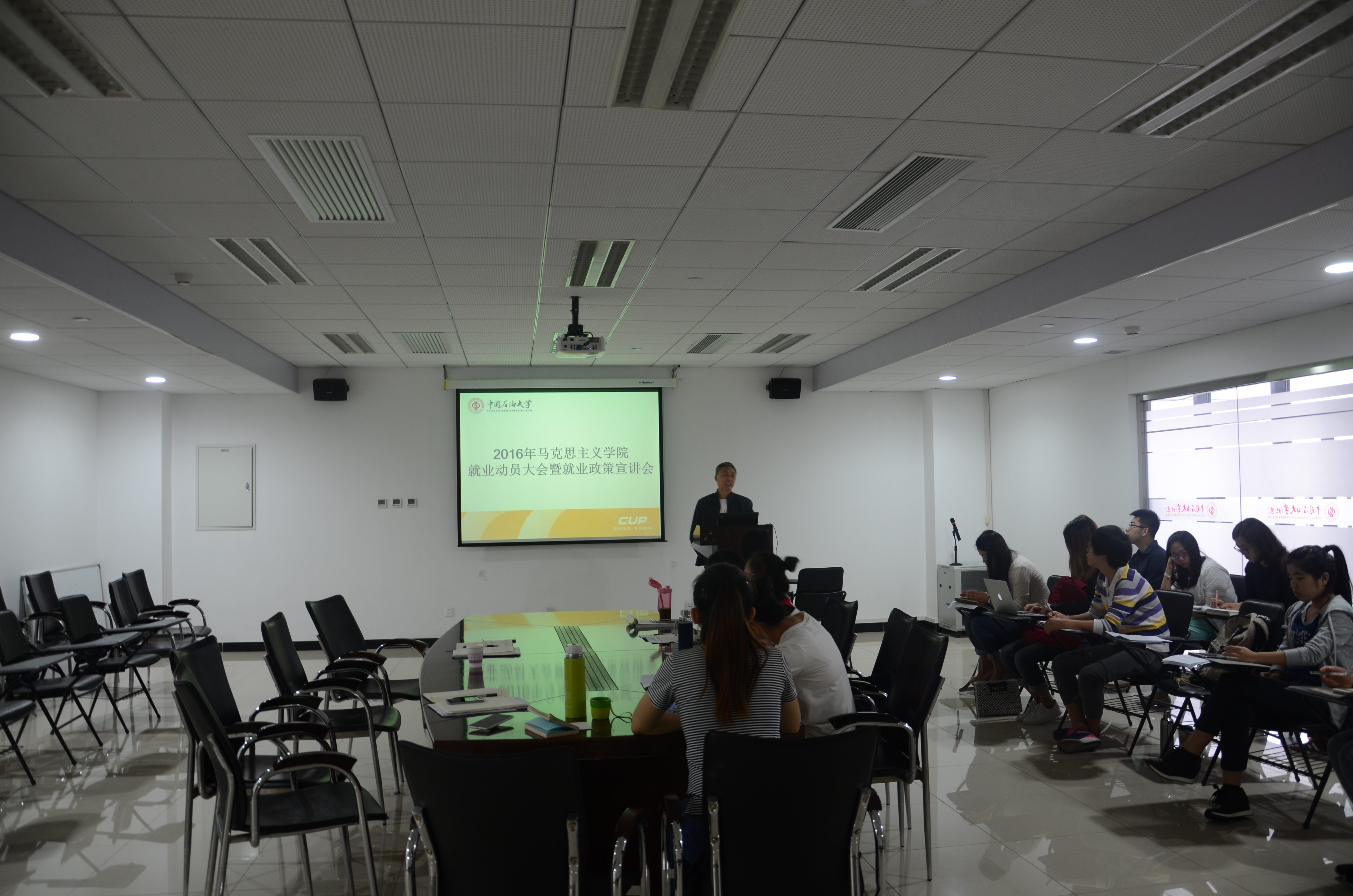 首先,朱义清老师就全国及我校的就业情况,对现阶段的就业进行研判。朱老师指出,我国现阶段就业存在以下问题:第一,供给问题,我国就业市场错位,就业难与招聘难的问题同时存在;第二,需求问题,我国就业存下需求乏力的现象;第三,氛围问题,国家大力倡导,但是就业仍然存在不公平的现象,而且学生就业观念也需要进一步调整。他指出,马克思主义学院就业主要存在以下问题:就业去向分散,留京比例低,留京难度越来越大。因此针对以上问题,大学生应该实现观念的转变,乐观对待,积极行动。