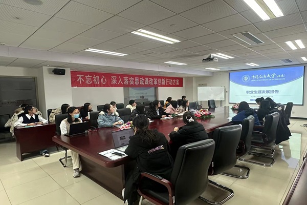 为贯彻落实党中央、国务院关于高校毕业生就业工作的决策部署,落实《国务院关于印发“十四五”就业促进规划的通知》,根据《教育部关于举办首届全国大学生职业规划大赛的通知》以及学校的相关要求,“筑梦青春志在四方,规划启航职引未来”首届全国大学生职业规划大赛中国石油大学(北京)马克思主义学院院内赛于12月5日在主楼A1018举行,马克思主义学院党委副书记方百会、团委书记刘彤彤、辅导员刘语灿及部分本科生代表出席。