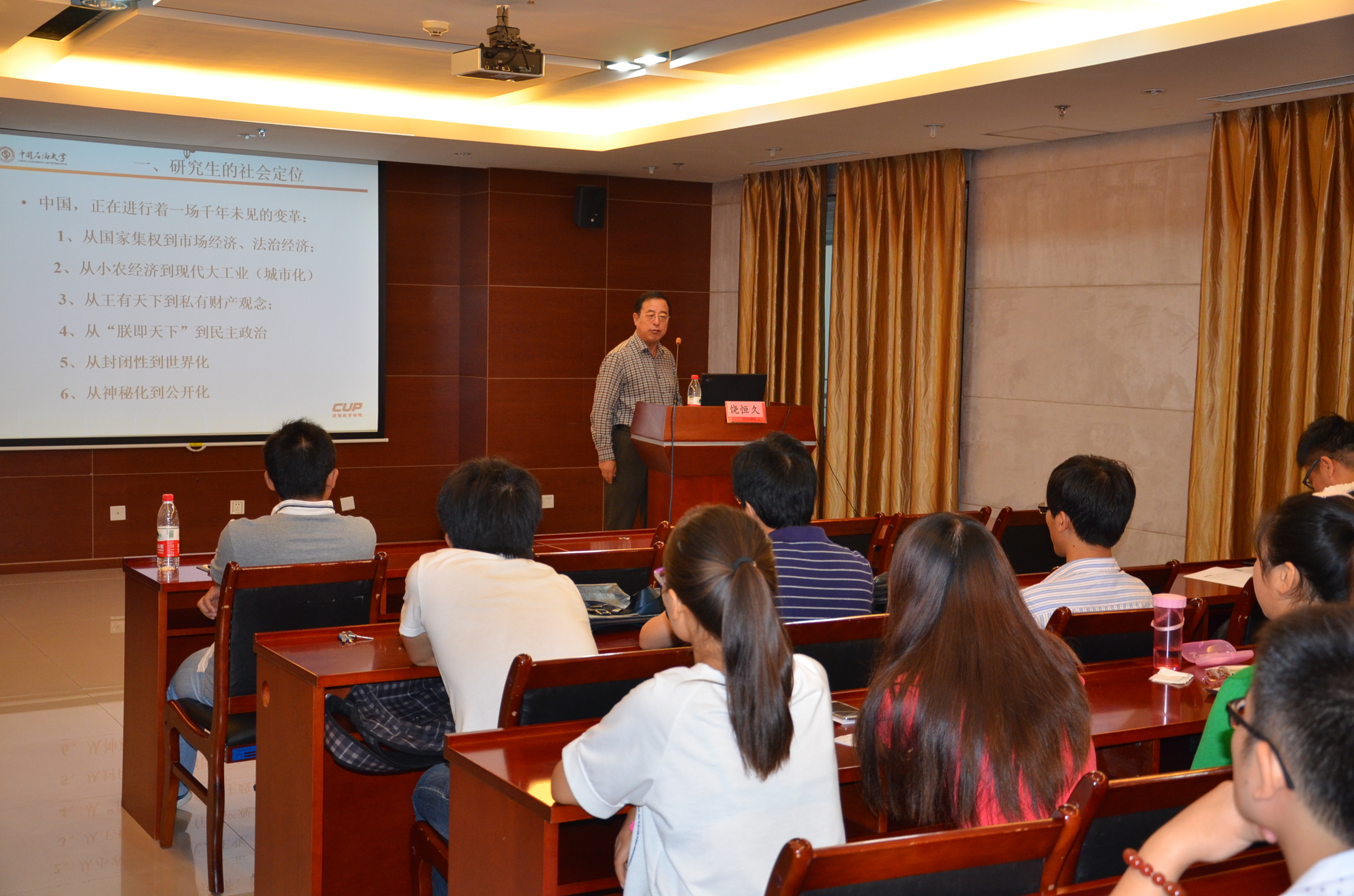 9月11日上午,我院邀请饶恒久教授在中油大厦316报告厅为2014级研究生新生作了“科学道德与学风建设教育“的报告。