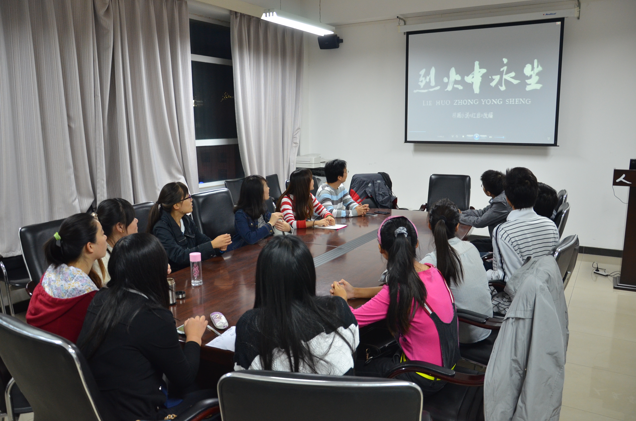 2014年9月29日晚,我院2014级研究生新生在中油大厦427会议室开展了“烈士纪念日”红色电影教育活动。