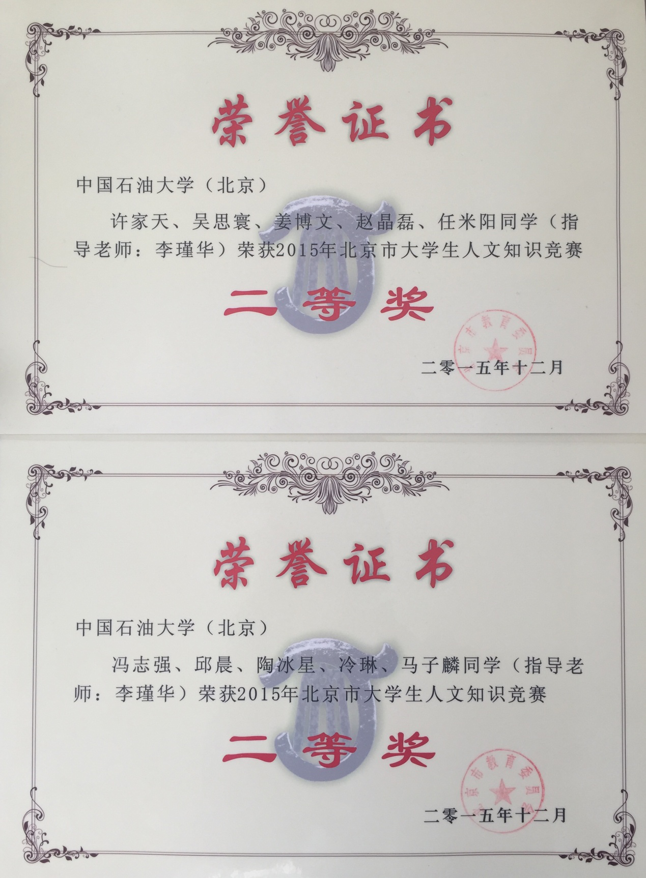 近日,由北京市教育委员会举办的北京市第七届大学生人文知识竞赛结果最终揭晓,石大派出的两支参赛队伍双双荣获二等奖。