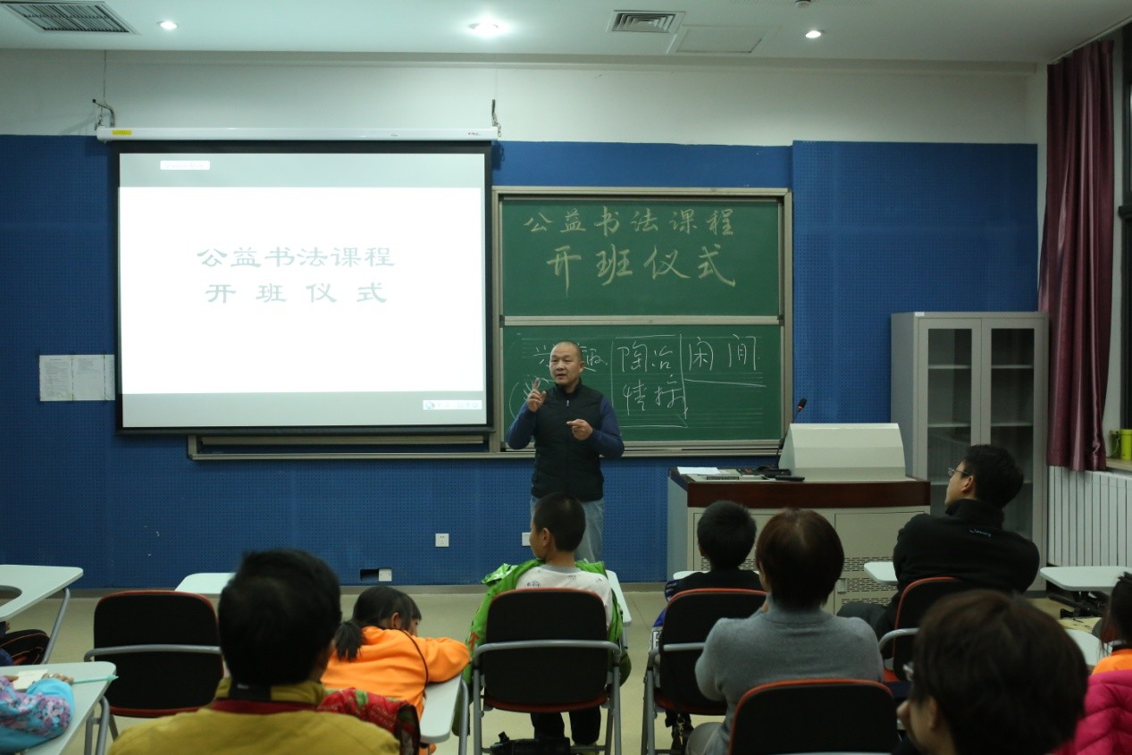 在开课前举行了简短的开班仪式,人文艺术教育中心主任李瑾华到场致辞,她给学员们介绍了公益班的成立缘起,办班宗旨和课堂组织形式,鼓励加入书法班学员们珍惜难得的学习机会,坚持练习、不断精进,为弘扬中华传统文化做贡献。