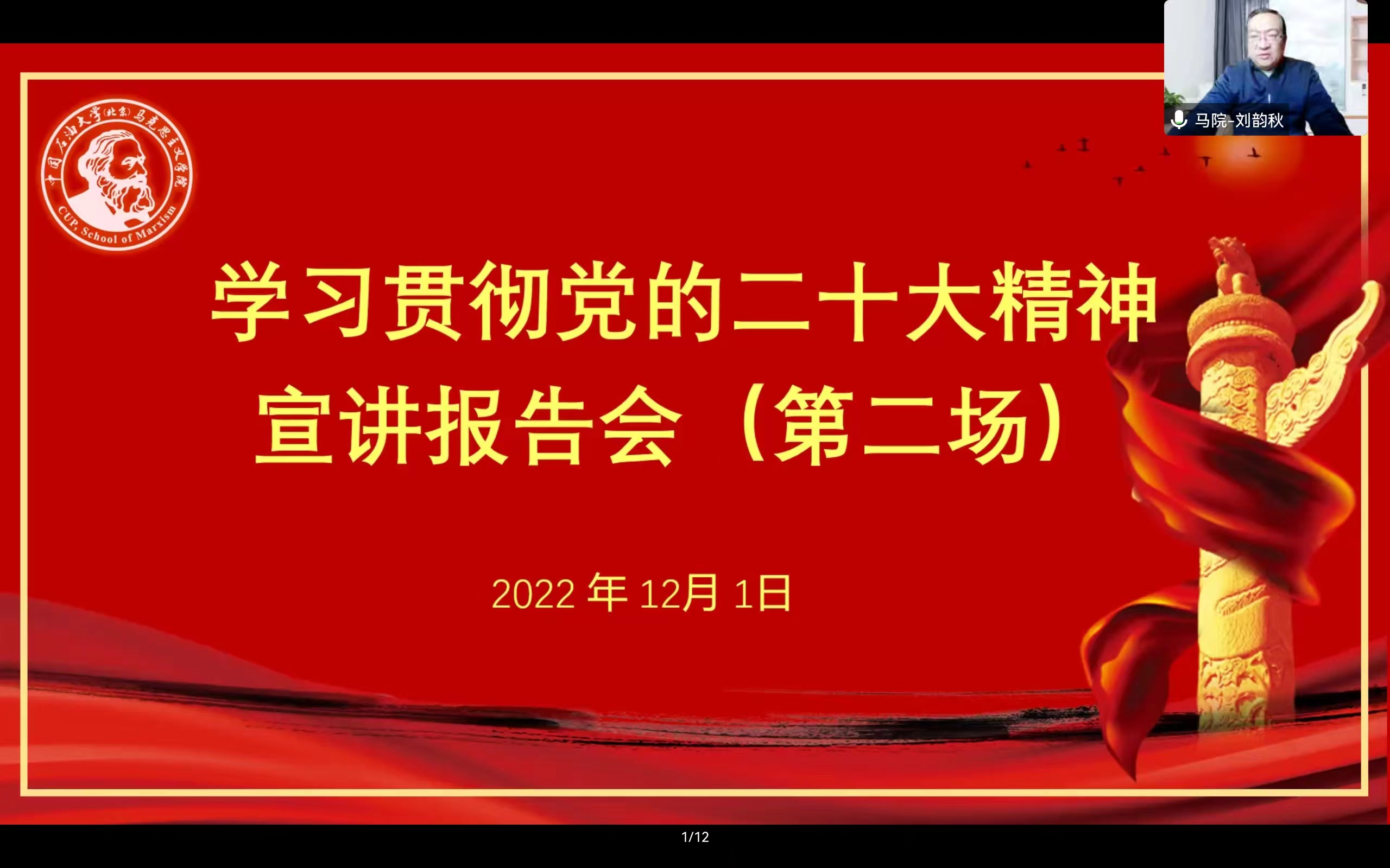 马克思主义学院副院长、教授庞昌伟作了题为“学思用贯通 知信行统一——深入学习领会贯彻党的二十大精神”的宣讲,围绕国家安全是民族复兴的根基、知行合一贯彻落实党的二十大决策部署意义重大、学习宣传贯彻党的二十大精神的重大意义、全面准确领会党的二十大精神、推进能源革命要“先立后破”、绿色转型开创中国能源国际合作新格局等内容进行了详细讲解。在宣讲中,庞昌伟提到党的二十大报告高屋建瓴、宏大精深,树起了“五座丰碑”,我们在学习贯彻党的二十大精神要坚持知行合一,坚决做到“两个维护”,切实推动改革发展稳定。同时,他结合具体案例深入讲述全球能源格局转变以及全球能源市场六大变化,并结合自身最新的科研成果提出了绿色转型开创中国能源国际合作新格局等观点。